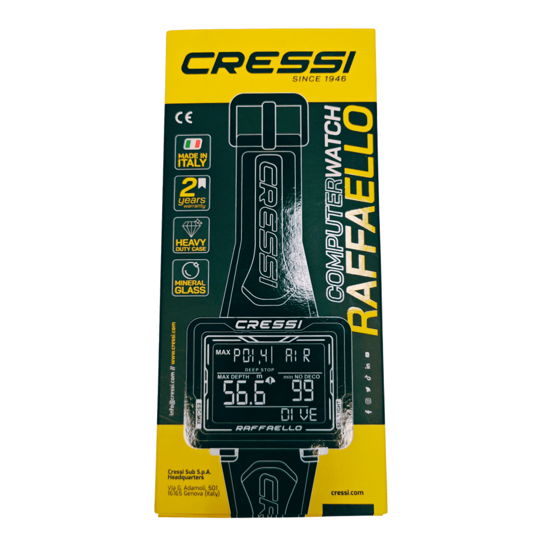 Компьютер Cressi Raffaello — это компьютер для дайвинга с прочным, устойчивым к царапинам корпусом и большим, легко читаемым дисплеем. Он предоставляет основные данные о погружении, включая время на поверхности и время десатурации, с долговечной батареей и функцией, которую может заменить пользователь. Программа DIVE использует алгоритм Cressi RGBM, что позволяет точно планировать погружение и управлять различными воздушными смесями. Функции безопасности включают индикаторы токсичности кислорода и сигналы тревоги при нарушении скорости всплытия. Программа FREE предоставляет исчерпывающие данные для погружений с задержкой дыхания, в то время как программа GAUGE предлагает основные измерения и сбрасываемые хронометры. LOGBOOK Raffaello хранит до 50 погружений на программу и включает в себя индикатор глубокой стадии и скорости всплытия для безопасной навигации. Надежность, производительность и удобство для дайверов. • Высококонтрастный дисплей. Очень крупные цифры, расположение для легкого чтения.• Интуитивно понятное меню с легким доступом• 12/24 формат времени и календарь• Подсвечиваемый дисплей• Время на поверхности, время рассыщения, время запрета полетов• Предупреждение о низком заряде батареи• Метрические или имперские меры• Долговечная батарея• Заменяемая пользователем батареяПРОГРАММА ПОГРУЖЕНИЯ (ВОЗДУХ/НИТРОКС)• Алгоритм Cressi RGBM• Полный обработчик данных погружения• Настройка PPO2 1,2-1,6• Различные воздушные смеси, управляемые во время погружения: GAS1 21-50% GAS 2 21-99% GAS3 21-99%• Графический индикатор уровней токсичности кислорода в ЦНС• Индикатор остановки безопасности• Фактор безопасности может быть установлен на разных уровнях• Настройка высоты• Алгоритм неконтролируемого всплытия• Возможность чередовать погружения на найтроксе и воздухе во времярассыщения• Время, видимое во время погружения• Возможность вставки/отмены глубокой остановки• Громкие сигналы в случае нарушения скорости всплытия,декомпрессионной остановки или PPO2• Всплытие Сигналы тревоги можно отключить• Возможен полный сброс. Полезно для аренды.• Возможность планирования погружений без декомпрессии споверхностным интервалом• Система глубокой стадии или потолка• Индикатор скорости всплытияПРОГРАММА FREE (APNEA)• Визуализация всех данных о погружении• Глубина• Температура воды• Счетчик погружений• Максимальная глубина погружения• Время погружения• Поверхностный интервал между погружениями• Длительность сеанса погружения• Поверхностный интервал• Сигнал времени восстановленияПРОГРАММА GAUGE (без калькулятора декомпрессии)• Индикатор глубины/температуры• Средняя глубина• Время погружения в минутах/секундах• Хронометр глубины можно сбросить• Дневное время видно во время погруженияРЕЖИМ ВЫКЛЮЧЕНИЯ• Датчики отключены, что позволяет плавать иплаватьЖУРНАЛ на 70 часов или 60 погружений