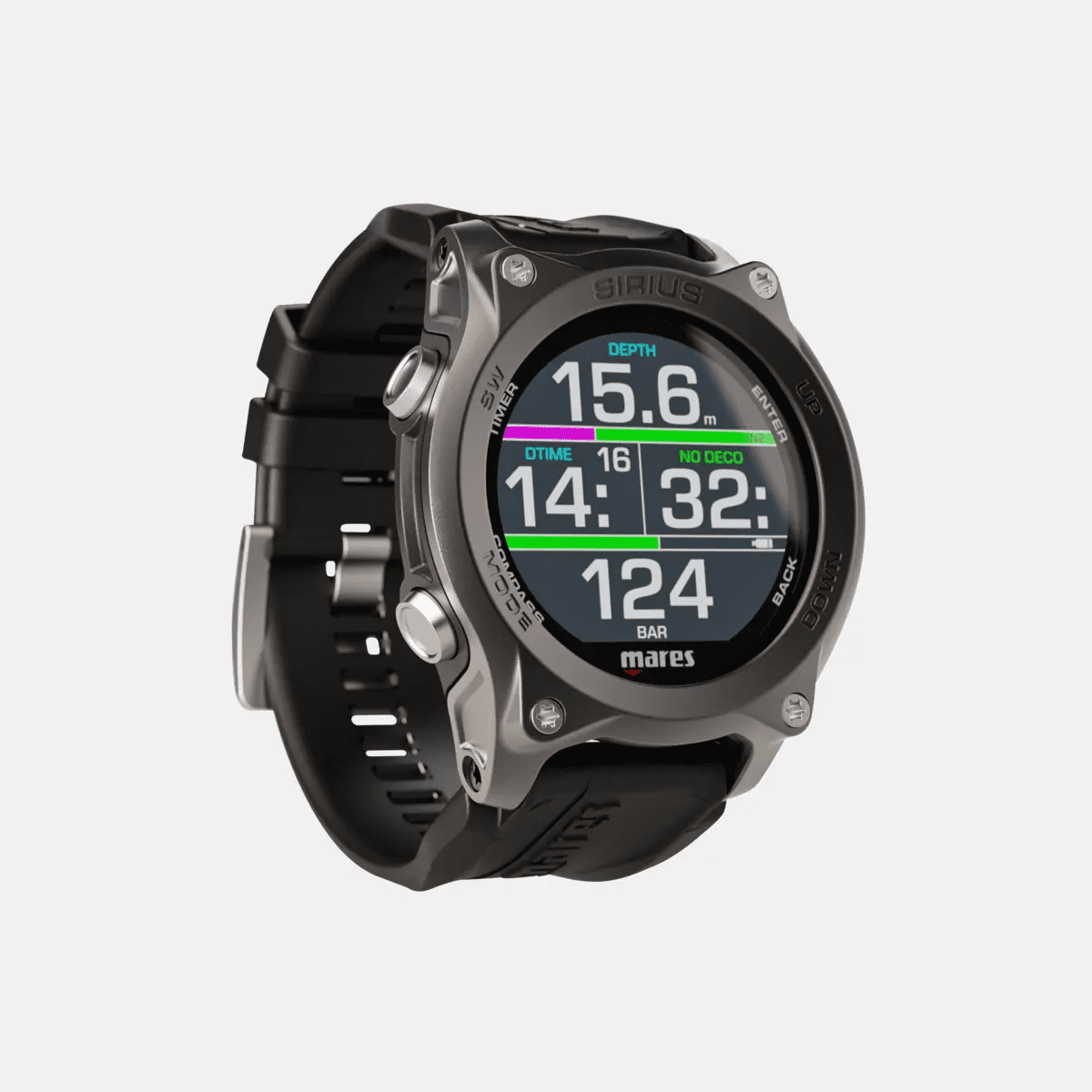 Sirius — это подводный компьютер в стиле часов, идеально сочетающий в себе технологии и элегантность. Этот подводный компьютер отличается передовыми технологиями, подходящими как для любителей, так и для дайверов с расширенным диапазоном погружений (Extended Range). Любители дайвинга могут просматривать данные о погружениях простым и интуитивно понятным способом, а также интегрировать данные из баллонов с помощью дополнительного модуля. Дайвер с расширенным диапазоном погружений может заправлять до пяти смесей найтрокс и тримикс. Благодаря сменному ремешку его можно использовать с гидрокостюмом любой толщины. Доступен в черном или черно-серебристом вариантах.