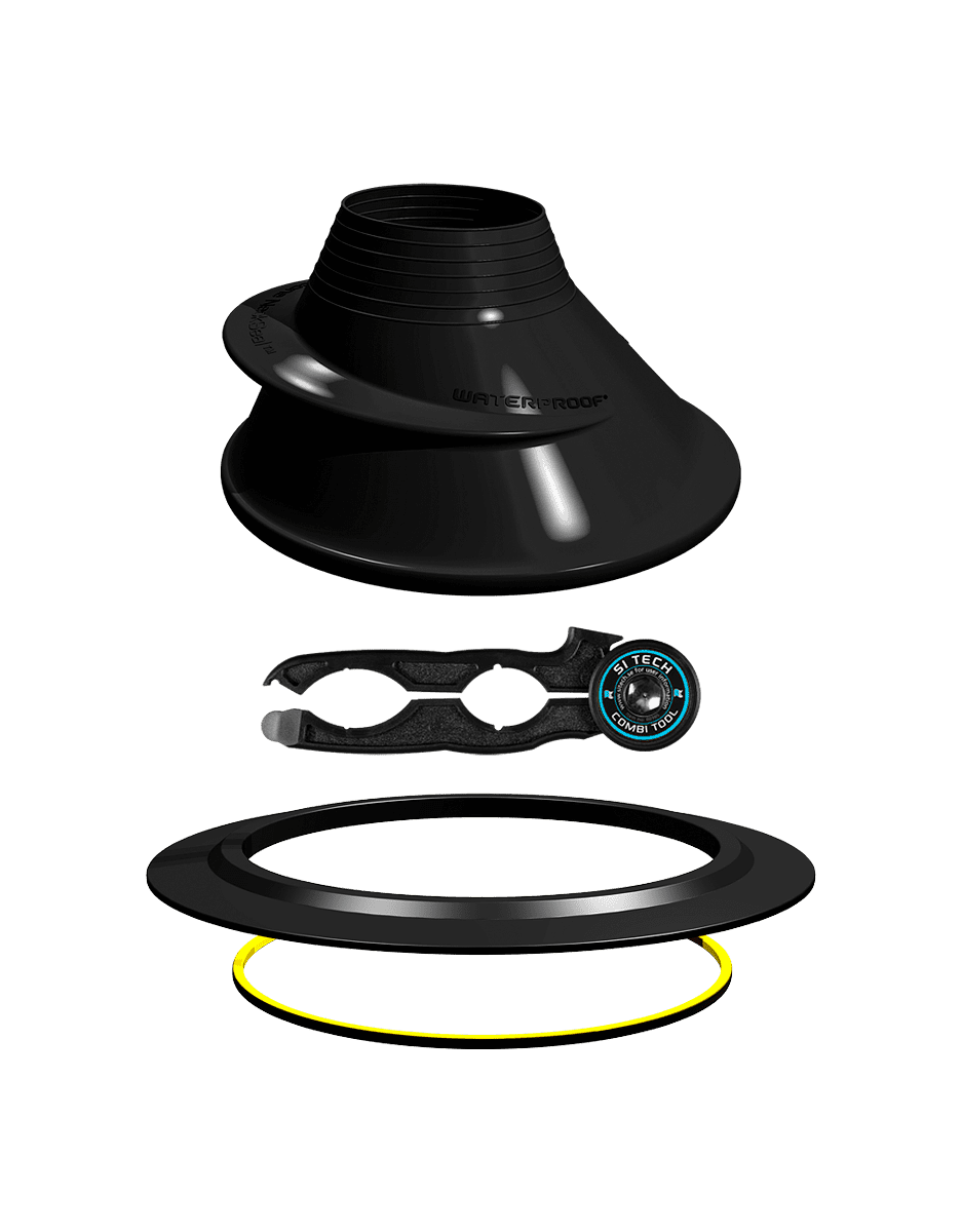 Комплект Neck Tite предназначен для быстрой установки и смены шейных манжет сухого гидрокостюма. К системе подходят как силиконовые (оптимально, штатно), так и некоторые, годные по размеру, латексные манжеты. Комплект включает в себя: вклеиваемое в гидрокостюм посадочное шейное кольцо (внешний диаметр 280 мм, внутренний 215 мм); стопорное зажимное кольцо; инструмент для установки кольца.