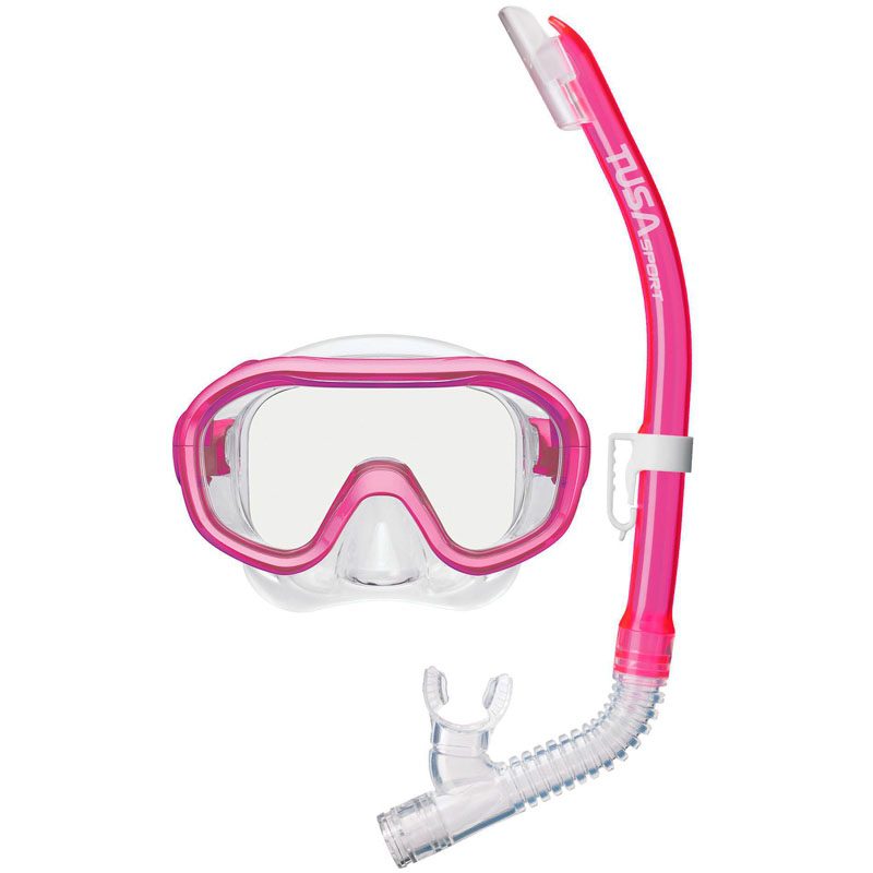 TUSA Sport Комплект маска + трубка UC0211P детский/подростковый Яркий детский комплект для плавания состоит из маски, трубки и сумки для переноски и хранения. 100% силикон комфортен и безопасен. закаленные стекла надежно защищают глаза ребенка, устойчивы к царапинам, трубка – оптимальна для начинающих. Маска подходит для детей от 6 до 12 лет