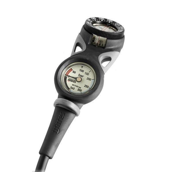 Консоль для дайвинга двухприборная Mares Mission 2 Nitrox манометр+компасВ консоли Mission 2 манометр и компас объединены в одну консоль. Наиболее интересным аспектом этой компоновки является наклонное положение компаса, что позволяет отображать два прибора (направление компаса и запас воздуха) одновременно.Манометр, рассчитанный на давление 300 бар и встроен в ударопрочный пластиковый корпус, и компас. Основные характеристики манометра для дайвинга Mission 2:Модульная конструкцияЛегко читаемый дисплейКорпус из латуниОкно из технополимераФосфоресцентный циферблат Основные характеристики дайвинг-компаса Mission 2:Погруженный в маслоБоковое окно для чтения Основные особенности консоли Mission 2C:Защитная резиновая консольНесколько точек крепления
