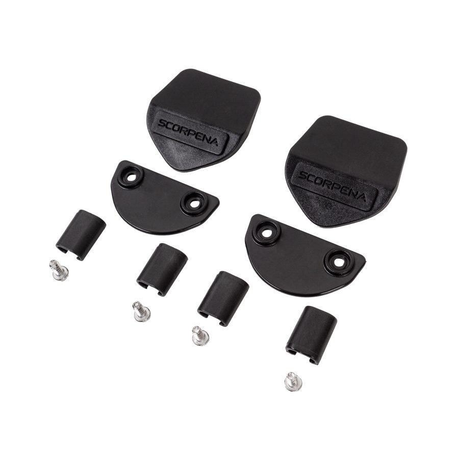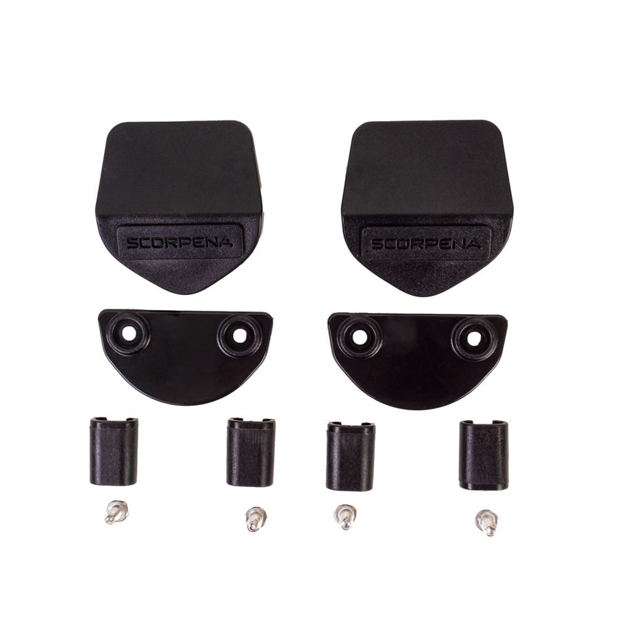 Набор для крепления пластиковых лопастей к калоше Scorpena F1. Содержит все необходимые предметы для пары калош и пары лопастей: две верхних площадки с логотипами Scorpena, две нижние ответные площадки, четыре винта и четыре клипсы для боковых усов. Все пластиковые детали одного набора изготовлены в едином цвете на Ваш выбор: чёрный, белый, серый, неоново-зелёный (Ecoline), ярко-красный (Elite), сине-голубой, мятный и прекрасно сочетаются с аналогичными цветами пластиковых лопастей в коллекции Scorpena. А возможность прямого или контрастного сочетания с калошами и разноцветными креплениями позволит Вам подобрать наиболее предпочтительный вариант или создать свою уникальную версию цветовой комбинации ласт.