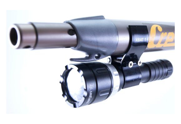 Универсальное крепление фонаря на пневматическое ружье или арбалет с диаметром рессивера (ствола) 40 мм любых фонарей с минимальным диаметром корпуса фонаря 20 мм.
