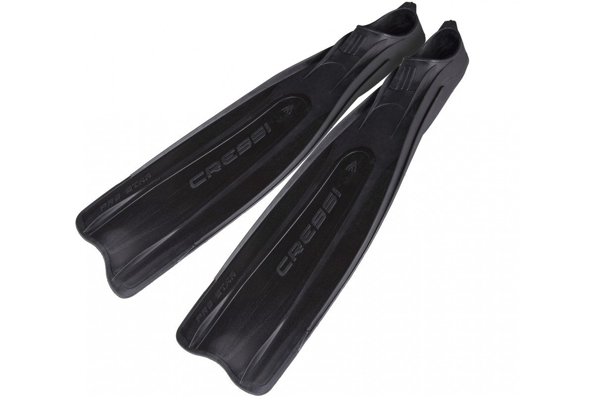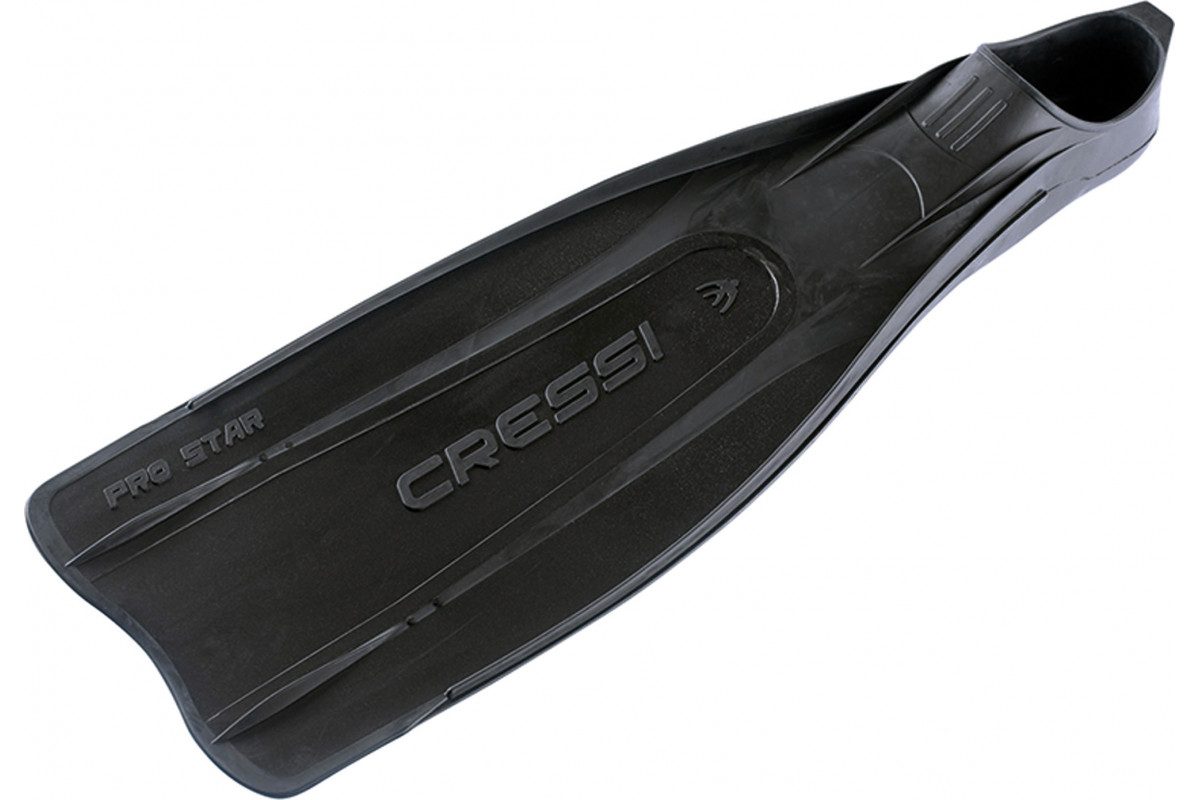 Ласты CRESSI PRO STAR предназначены для глубоководных погружений.Лопасть сделана из исключительно лёгкого и податливого полипропилена, который скомбинирован с удобной терморезиной.Началом лопасти служит верхняя часть галоши, что позволило увеличить эффективную площадь гребка на 20%.Боковые ребра жесткости тянутся практически вдоль всей лопасти, постепенно переходя в защитный изолирующий слой вдоль всей ее кромки.Удобны в использовании различных гребков, с которыми вы не будете сталкиваться с трудностями в воде, т.к. имеются два стабилизирующих хвостовых плавника на конце лопасти и на подошве стопы, дающие лёгкую управляемость и стабилизацию.Анатомичность галоши, разработанная с помощью компьютерных технологий, гарантирует оптимальную передачу усилия.Более того ласты были разработаны не только для плавания и фридайвинга, но также и для погружения с аквалангом.Технические характеристики:- вес ласт в сборе: 1000 г,- тип пятки: закрытая;- габариты ласт: 55см*19см*10см,- длина лопасти: 40 см,- угол излома лопасти: 18 градусов.