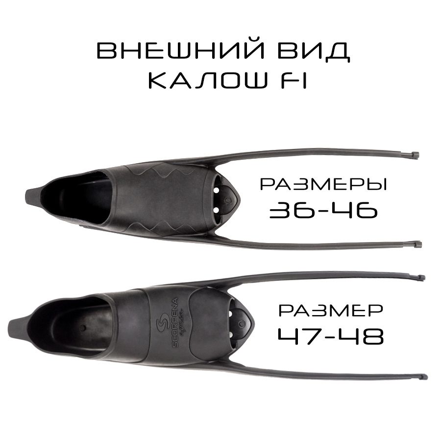 Новые ласты от SCORPENA с мягкой пластиковой лопастью для фридайверов и подводных охотников. Сменные лопасти позволят модифицировать Ваши ласты в зависимости от поставленных целей или типа погружения, используемого снаряжения или даже предпочтительных цветов.  Эти ласты собраны из калоши Scorpena F1, пластиковой лопасти Scorpena Apnea и комплекта крепежа соответствующего цвета. Все эти комплектующие можно купить по отдельности и собрать свои уникальные по дизайну и характеристикам ласты. У каждого покупателя есть возможность создать свою уникальную комбинацию, выбирая сочетание калоши из чёрной или белой резины, лопасти любого из 5 цветов (чёрного, белого, красного, неоново-зелёного, мятного) и крепления – 6 цветов (чёрного, белого, серого, красного, неоново-зелёного, мятного). Общая длина лопасти Apnea 77 см., длина рабочей части (от комля до кончика) 62 см. Ширина лопасти 21,5 см. На конце рабочей части лопасти есть небольшие «»направляющие»», которые будут стабилизировать лопасть в водном пространстве. Лопасти Scorpena Apnea выполнены из очень мягкого и гибкого пластика. Состав этого материала подобран таким образом, чтобы обеспечить оптимальное соотношение мягкости и эластичности для обеспечения комфорта и возможности длительного использования со значительным пропульсивным эффектом для поддержания высокой скорости передвижения в воде и дальней дистанции заплыва.  Этому также способствует переменная толщина лопасти по длине и нелинейная эпюра изгиба при гребке. В средней части лопастей имеются две направляющие, которые позволяют удерживать ласту в одной плоскости при гребке, что придаёт стабильность при незначительных усилиях.  Лопасти  Scorpena Apnea доступны в двух вариантах жёсткости. Чтобы облегчить выбор, мы разделили их по цвету: чёрные, красные и неоново-зелёные обладают стандартной мягкостью. А лопасти голубого, мятного и белого цветов сделаны ещё чуть более мягкими, чем предыдущие.  Это позволило ещё больше снизить нагрузку на голеностоп и колени, снизить сопротивлению маховым движениям и, следовательно, увеличить время пребывания в воде для тренировок или охоты.  Также эти лопасти рекомендуется для пловцов, которые только начинают интенсивно тренироваться/охотиться или пловцам, обладающим небольшим собственным весом. Другими словами, Вы сможете плавать в них дольше и меньше уставать при этом. Наиболее эффективно все качества этих лопастей проявляется при совместном их использовании в паре с калошами Scorpena F1. Калоша Scorpena F1, состоящая из нескольких различных по жёсткости типов резины, что обеспечивает исключительный комфорт использования в сочетании с высочайшей эффективностью передачи энергии гребка как при спокойном плавании по поверхности, так и энергичных глубоководных нырков. На задней части калоши предусмотрен небольшой язычок для облегчения надевания калоши на пятку после полного и плотного вставления стопы в калошу до упора спереди и её снимания. Также практика показала, что калоша Scorpena F1 как нельзя лучше подходит для использования при занятиях любыми видами фридайвинга, особенно если спортсмен предпочитает надевать ласты на голую ногу или тонкий неопреновый носок.