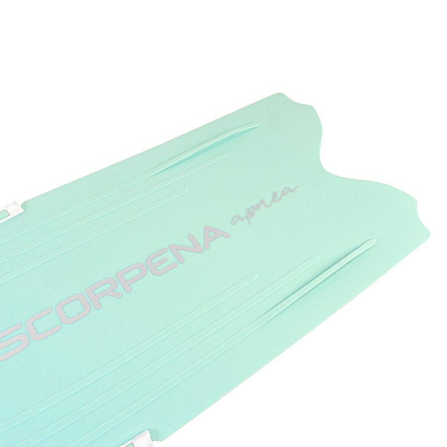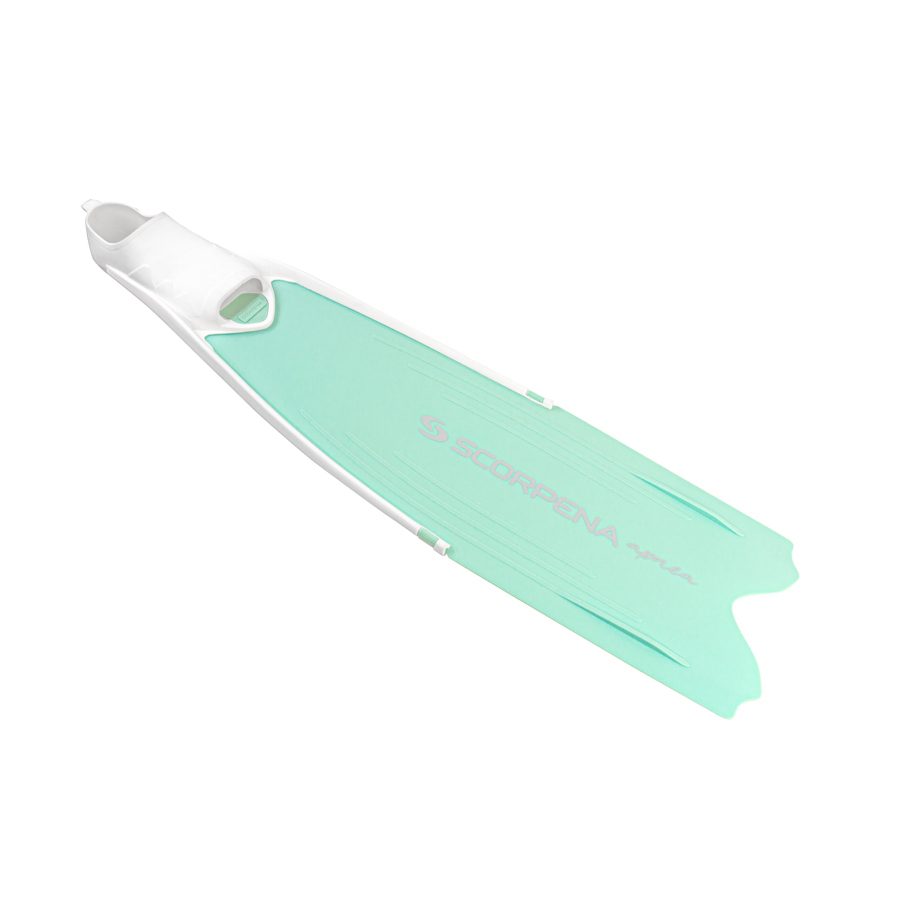 Новые ласты от SCORPENA с мягкой пластиковой лопастью для фридайверов и подводных охотников. Сменные лопасти позволят модифицировать Ваши ласты в зависимости от поставленных целей или типа погружения, используемого снаряжения или даже предпочтительных цветов.  Эти ласты собраны из калоши Scorpena F1, пластиковой лопасти Scorpena Apnea и комплекта крепежа соответствующего цвета. Все эти комплектующие можно купить по отдельности и собрать свои уникальные по дизайну и характеристикам ласты. У каждого покупателя есть возможность создать свою уникальную комбинацию, выбирая сочетание калоши из чёрной или белой резины, лопасти любого из 5 цветов (чёрного, белого, красного, неоново-зелёного, мятного) и крепления – 6 цветов (чёрного, белого, серого, красного, неоново-зелёного, мятного). Общая длина лопасти Apnea 77 см., длина рабочей части (от комля до кончика) 62 см. Ширина лопасти 21,5 см. На конце рабочей части лопасти есть небольшие «»направляющие»», которые будут стабилизировать лопасть в водном пространстве. Лопасти Scorpena Apnea выполнены из очень мягкого и гибкого пластика. Состав этого материала подобран таким образом, чтобы обеспечить оптимальное соотношение мягкости и эластичности для обеспечения комфорта и возможности длительного использования со значительным пропульсивным эффектом для поддержания высокой скорости передвижения в воде и дальней дистанции заплыва.  Этому также способствует переменная толщина лопасти по длине и нелинейная эпюра изгиба при гребке. В средней части лопастей имеются две направляющие, которые позволяют удерживать ласту в одной плоскости при гребке, что придаёт стабильность при незначительных усилиях.  Лопасти  Scorpena Apnea доступны в двух вариантах жёсткости. Чтобы облегчить выбор, мы разделили их по цвету: чёрные, красные и неоново-зелёные обладают стандартной мягкостью. А лопасти голубого, мятного и белого цветов сделаны ещё чуть более мягкими, чем предыдущие.  Это позволило ещё больше снизить нагрузку на голеностоп и колени, снизить сопротивлению маховым движениям и, следовательно, увеличить время пребывания в воде для тренировок или охоты.  Также эти лопасти рекомендуется для пловцов, которые только начинают интенсивно тренироваться/охотиться или пловцам, обладающим небольшим собственным весом. Другими словами, Вы сможете плавать в них дольше и меньше уставать при этом. Наиболее эффективно все качества этих лопастей проявляется при совместном их использовании в паре с калошами Scorpena F1. Калоша Scorpena F1, состоящая из нескольких различных по жёсткости типов резины, что обеспечивает исключительный комфорт использования в сочетании с высочайшей эффективностью передачи энергии гребка как при спокойном плавании по поверхности, так и энергичных глубоководных нырков. На задней части калоши предусмотрен небольшой язычок для облегчения надевания калоши на пятку после полного и плотного вставления стопы в калошу до упора спереди и её снимания. Также практика показала, что калоша Scorpena F1 как нельзя лучше подходит для использования при занятиях любыми видами фридайвинга, особенно если спортсмен предпочитает надевать ласты на голую ногу или тонкий неопреновый носок.