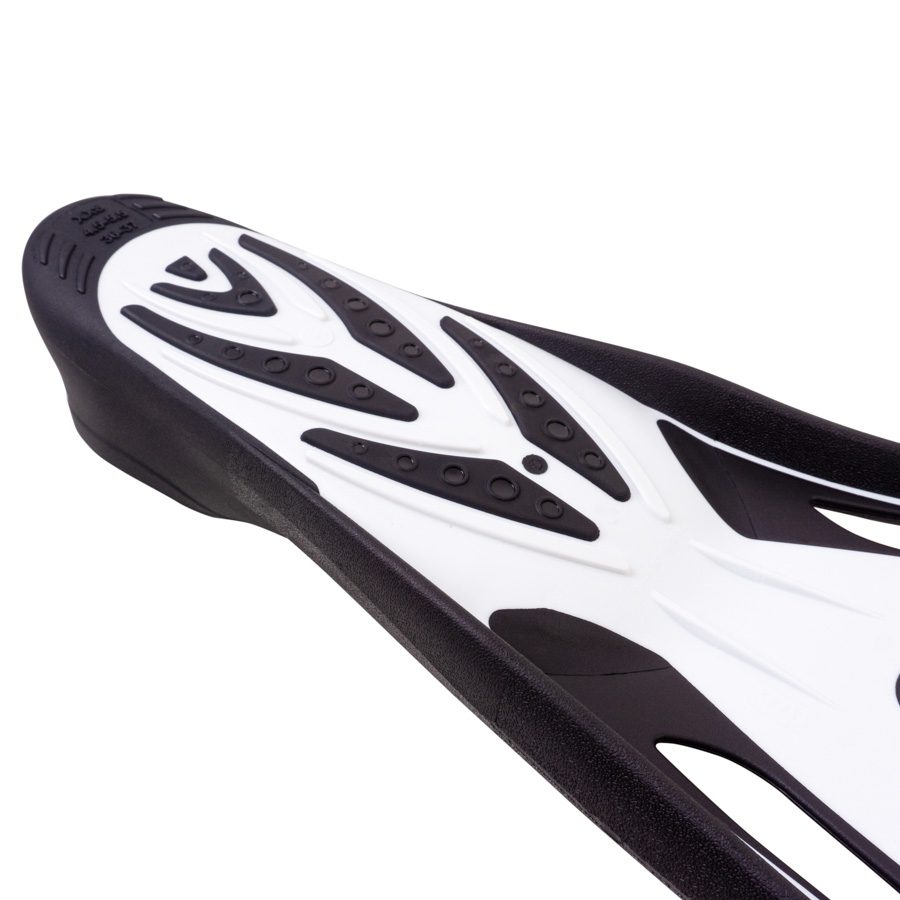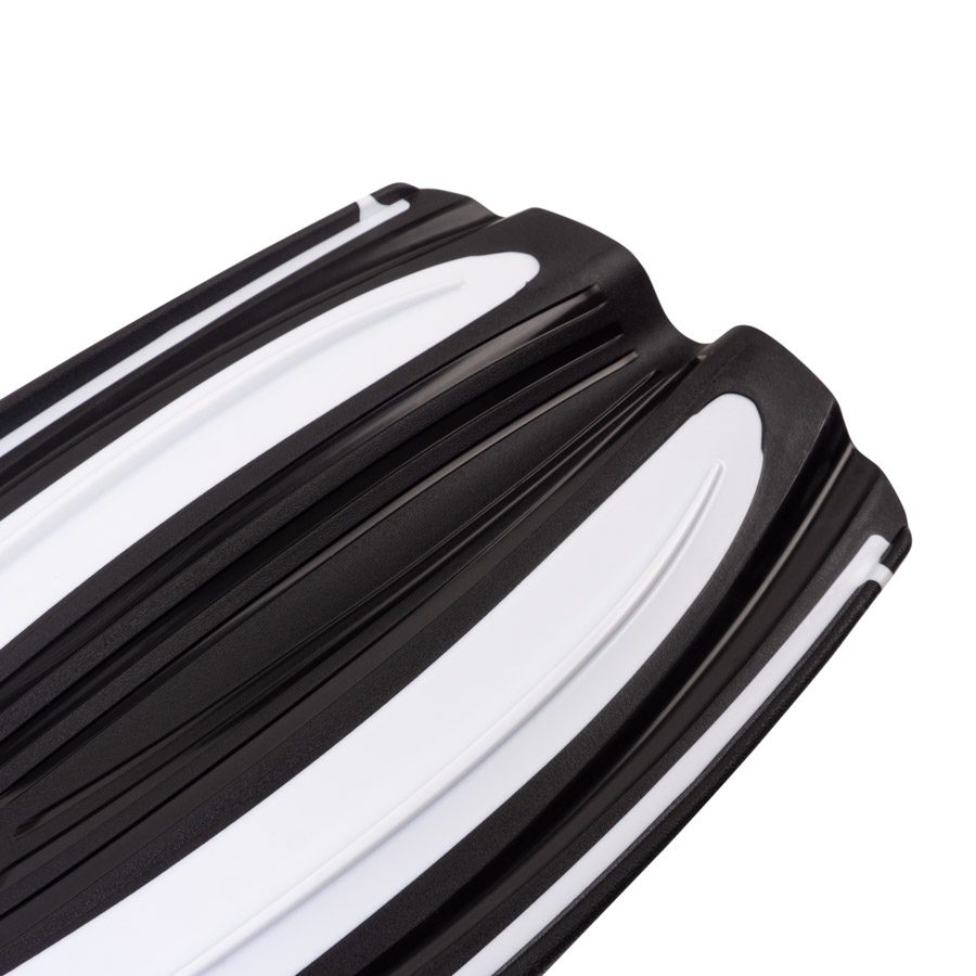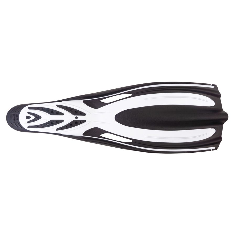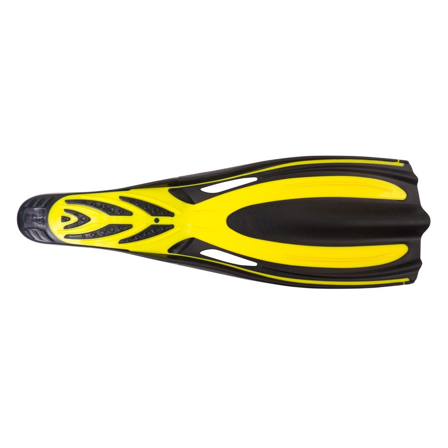 Scorpena SwimLine — ласты средней длины, предназначенные для всех видов подводной активности: погружений с аквалангом – SCUBA-дайвинг, плавания по поверхности и ныряния – сноркелинг, а также для скоростного плавания в бассейне.Лопасть ласт выполнена из двух различных материалов, что улучшает гибкость и комфорт, а также позволяет добиться высокого уровня передачи энергии. Центральная часть лопасти выполнена из эластичной резины которая при гребке прогибается и образует тоннель не позволяющий воде перетекать в зону разряжения (на обратной стороны лопасти), через боковые грани – рёбра жёсткости. Таким образом вода при гребке направляется к концу лопасти, мощность гребка возрастает, а потери энергии при этом снижаются. Такое решение в лопастях называют «»тоннельным эффектом»».Калоша снизу является продолжением лопасти, что увеличивает эффективную площадь гребка: в нём участвует вся поверхность ласты, поэтому даже при средней длине ласты возможно, при необходимости, развивать большую мощность гребка. Усилие распределено равномерно по всей лопасти, что помогает разгрузить голеностоп пловца. Лопасти так же имеют обтекаемые рёбра жёсткости, выполненные из плотной резины.На лопастях ласт имеются специальные отверстия по бокам — ламинаризаторы потока. При гребке, некоторое количество воды, через эти отверстия перетекает из области высокого давления в область пониженного давления на обратной стороне лопасти и, при этом, обтекание лопасти водой там становится ламинарным, существенно снижая турбулентность (завихрения). Другими словами, на плавание в этих лопастях тратится значительно меньше энергии, чем в ластах без ламинаризатора потока. А значит Вы сможете плавать в них гораздо дольше и меньше уставать при этом.В носовой части галоши сверху имеется отверстие для выталкивания воды при надевании ласт на мелководье, а также для лёгкого удаления случайно попавших внутрь песка, камешков, веточек и т.п.Широкий диапазон размеров – от 36/37 до 44/45 и разнообразие цветов позволит сделать свой выбор самому требовательному покупателю.