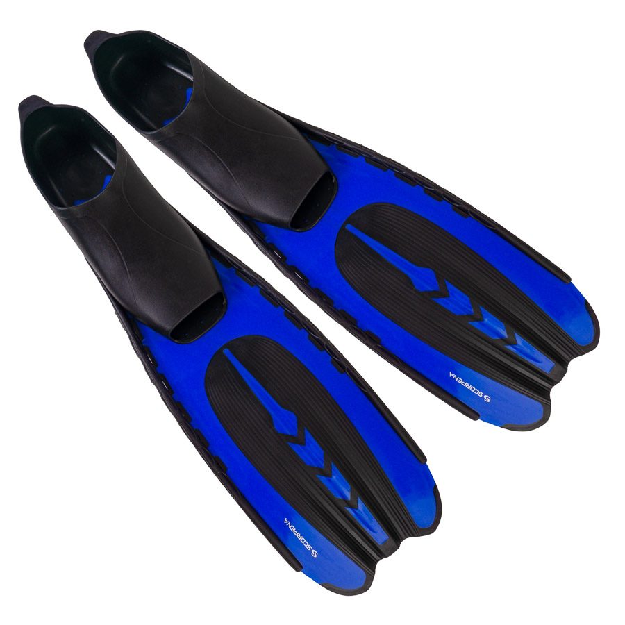 Ласты Scorpena Velocity созданы для скоростного плавания как в бассейнах, так и в открытых водоёмах. Эти яркие, лёгкие и относительно компактные ласты станут незаменимы во время морских каникул! Scorpena Velocity доступны в 4 расцветках и широкой размерной сетке (от 32 до 47 размера ноги).Ласты имеют цветные пластиковые лопасти. Обрезиненные края защищают лопасть от растрескивания при несильных ударах, продлевая тем самым срок службы ласт.Интересным конструктивным решением, направленным на повышение эффективности гребка, являются гибкие вставки в лопастях. Центральная часть лопасти выполнена из эластичной резины которая при гребке образует тоннель не позволяющий воде перетекать в зону разряжения (на обратной стороны лопасти), через боковые грани. Таким образом вода направляется к концу лопасти, мощность гребка увеличивается, а потери энергии при этом снижаются за счёт ламинаризации основного потока. Такое решение в лопастях называют «»тоннельным эффектом»». Боковые рёбра жёсткости обеспечивают наиболее эффективную форму изгиба лопасти при гребке, а отверстия в них облегчают вес.По оценкам большинства наших испытателей это одни из самых скоростных ласт в данном сегменте, поэтому и название родилось само — Scorpena Velocity.За комфорт для стопы отвечает специально подобранный материал галоши, который при высокой степени эластичности и мягкости обладает достаточной прочностью. В носовой части имеется отверстие для выталкивания воды при надевании ласт на мелководье, а также для лёгкого удаления случайно попавших внутрь песка, камешков и т.п. А для удобства натягивания галош на пятку предусмотрен специальный «язычок».Ласты имеют небольшой вес и габариты, что позволяет без труда взять их с собой на отдых или в бассейн.Технические характеристики:- Общая длина (зависит от размера): 57 см- ширина лопасти (в самом широком месте): 18 см- длина лопасти (от кончика до носа калоши): 32 см- вес одной ласты: 435 г (пара весит около 890 г)