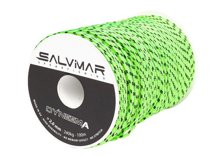 Salvimar DYNEEMA — твердый линь с ярко выраженной памятью, хорошо подойдет для изготовления зацепов для подводного ружья арбалета, такой зацеп прослужит не один сезон. Разрывная нагрузка линя Salvimar DYNEEMA черный — 240 кг. при толщине 2 мм., приэтом линь обладает крайне высокой устоичивостью к истиранию. Можно использовать как рабочий линь, но ввиду излишней жесткости и памяти не рекомендуется использовать на катушку.