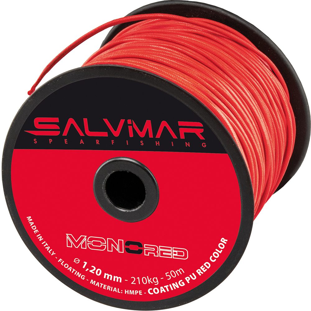 Линь Salvimar “MONORED” (Материал «HMPE» + полиуретановая оболочка «PU») Линь “MONORED” разработан таким образом, что совмещает в себе все лучшие качества монолиня и обычного линя. Он как и монолинь не путается и не завязывается в узлы, легче скользит в воде и на нем сразу видны повреждения, но при этом его возможно привязывать как и обычный веревочный линь узлами. Теперь можно использовать веревочный линь и как рабочий, а не только на катушки. Основные характеристики и преимущества: — Имеет одинаковую разрывную нагрузку в т.ч. И на узлах.- Внутренний сердечник из высокомодульного материала HMPE- Снаружи линь покрыт полиуретановое покрытие «PU», что обеспечивает два важных преимущества:- Отсутствие заломов на лине, что значительно снижает риск того что линь запутается.- Устойчив к ультрафиолету, что значительно увеличивает срок службы линя.- Линь имеет положительную плавучесть- Устойчив к истиранию- Высокая разрывная нагрузка при малом диаметре- Красный цвет обеспечивает хорошую видимость линя. Особенно это актуально при эксплуатации в мутной воде. Рекомендуем Вам попробовать новый линь MONORED от Salvimar в качестве рабочего на Вашем ружье, не зависимо от того арбалет у Вас или пневмат. Выпускается в трех диаметрах: — 1,2 мм (Разрывная нагрузка 210 кг) (Подходит для бегунка Salvimar под монолинь)- 1,5 мм (Разрывная нагрузка 245 кг)- 1,8 мм (Разрывная нагрузка 310 кг)