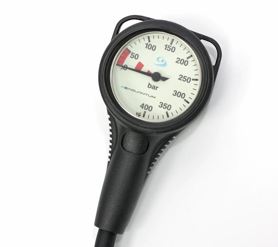 Манометр в ударопрочном металлическом корпусе. Корпус из никелированной латуни Полиуретановый кожух Светящийся циферблат Рабочее давление 400 бар Шланг длиной 80 см.