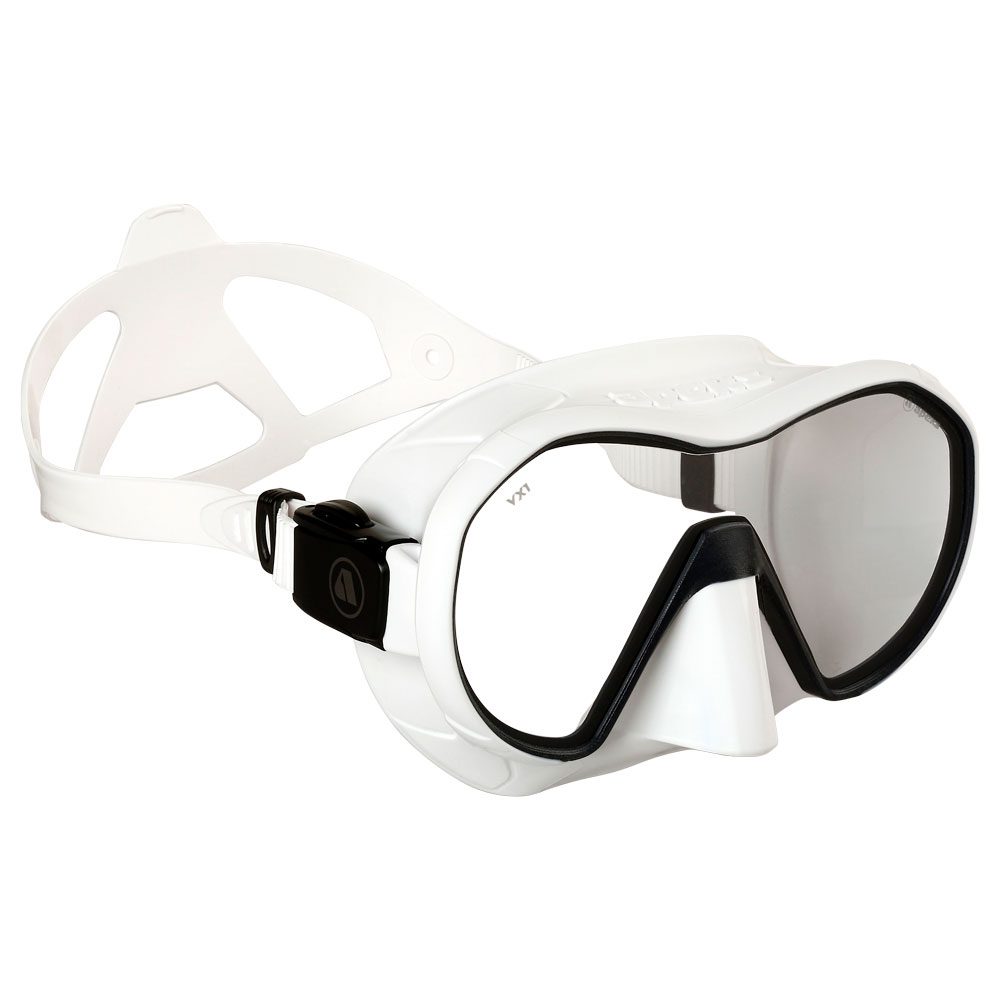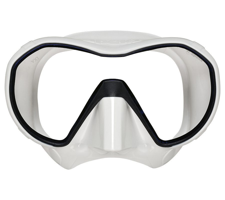 Маска для дайвинга и плавания VX1 Apeks Техническая маска премиум-класса, изготовленная по технологии frameless из хирургического силикона высочайшего качества. Компактная и легкая, она обеспечивает великолепный обзор и непревзойденный уровень комфорта. Это первая маска в линейке Apeks.                  ОСОБЕННОСТИ VX1        Безрамная конструкция (с применением технологии Micromask — уменьшенный объем подмасочного пространства при увеличенном поле зрения)               Помимо версий с прозрачными линзами выпускается также маска линзами, защищающими от УФ излучения и отражающими яркий свет        Регулируемые одним прикосновением пряжки. Натяжение ремешка легко и удобно регулировать даже в толстых перчатках.        Teхнология улучшенного прилегания Advanced Fit. Плотное и комфортное прилегание достигается использованием силикона разной плотности в разных областях обтюратора.        3D-сферический ремешок плотно обхватывает затылок и надежно удерживает маску на месте        Цветные силиконы: ченый и белый        Цвета: черный и  whit arctic         Линзы: прозрачные и с анти-УФ напылением        Пряжки: плоские, надежные, легко регулируемые         Защитный кейс в комплекте