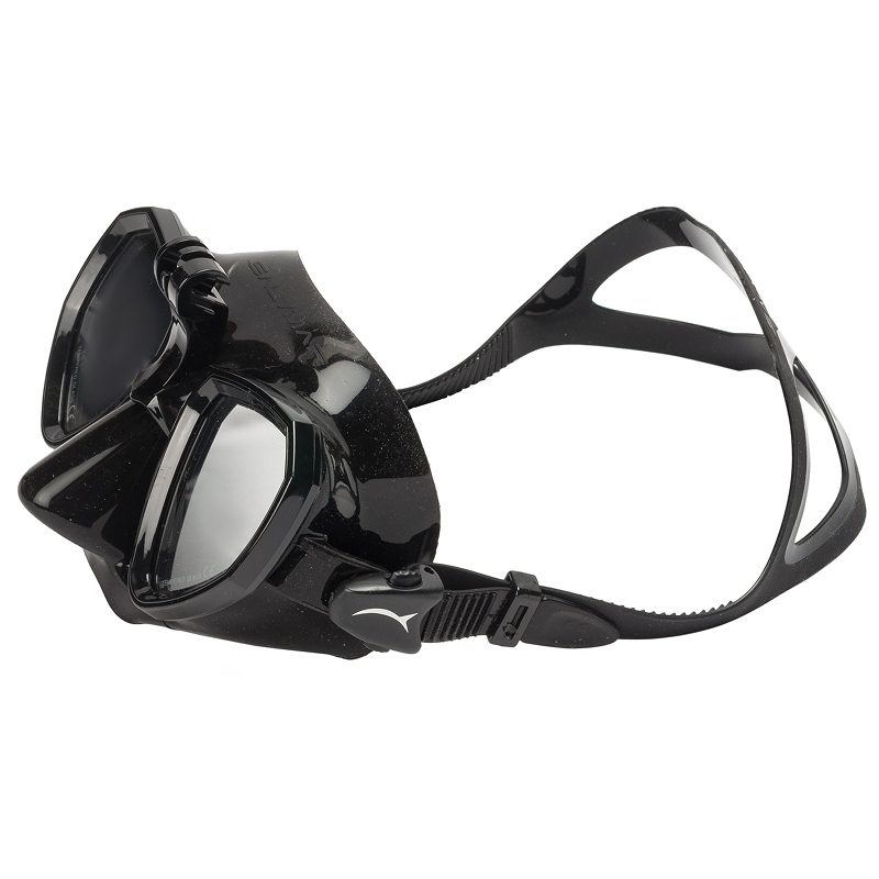 Маска подходит под большинство типов лиц и герметично прилегает благодаря мягкому обтюратору по всему периметру. Юбка этой маски изготовлена из высококачественного эластичного гипоаллергенного силикона. Стекла – особо прочные, закалённые. Затылочный ремешок изготовлен из силиконовой резины и имеет расширение в центральной части для более надёжного охвата головы и комфортного прижатия маски к лицу. Для регулировки степени прижима маски, она имеет пряжки с механизмом быстрой регулировки. Причём регулирование осуществляется в весьма широком диапазоне, что позволяет использовать эту маску людям с очень широким диапазоном размеров головы.