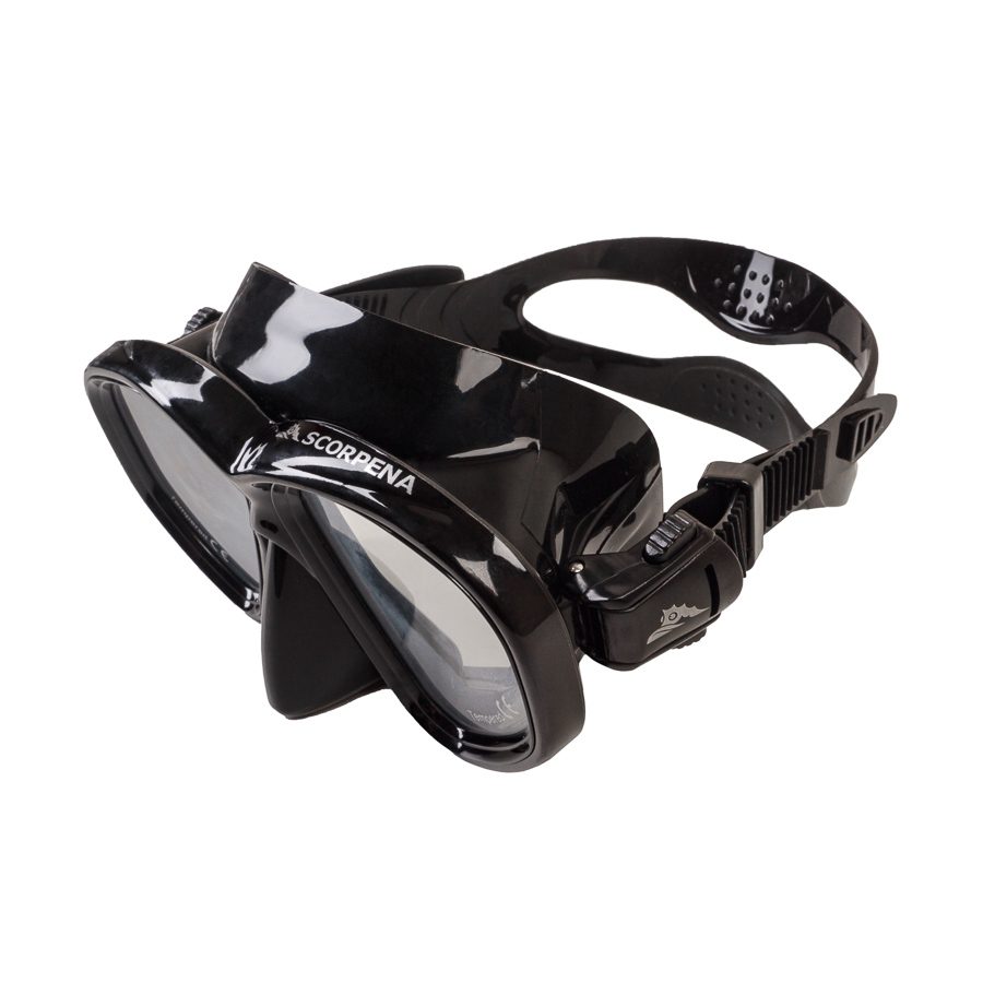 Маска Scorpena A2 — это классическая двухстекольная маска для подводного плавания. Эта маска имеет среднее подмасочное пространство, что делает её очень универсальной. Такая маска подойдет для сноркеллинга (плавание с маской и трубкой, отдых на воде), дайвинга и не глубокой подводной охоты (до примерно 10 метров).Благодаря своей форме маска правильно садится на большинство типов лиц. Небольшой вес и мягкий обтюратор из гипоаллергенного силикона делает плавание в маске Scorpena A2 очень комфортным.Большие пряжки быстрой регулировки гарантируют удобную настройку ремешка. Пряжки прикреплены к силиконовому обтюратору, а не к рамке маски. Это сделано бы сделать маску более надежной и комфортной. Уникальное гибкое крепление пряжек — поворотное, благодаря чему возможно настроить наиболее комфортное положение маски на лице и добиться более плотного ее прилегания. Также особая конструкция крепления пряжки поглощает силу удара в случае падения и защищает пряжку от поломки.Линзы выполнены из закаленного безопасного стекла.Маска поставляется в комплекте с пластиковым боксом для хранения и транспортировки.