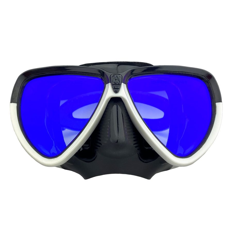 Модификация маски Scorpena A3 у которой линзы покрыты четвертьволновым интерференционным просветляющим покрытием, что улучшает контраст и восприятие объектов под водой, особенно в условиях с небольшой прозрачностью, «цветущей» или мутной от взвеси воды.Однако просветлённое интерференционное покрытие на линзах требует бережного обращения, так как эти тончайшие плёнки легко повредить. Кроме того, загрязнения (в том числе и отпечатки пальцев) могут привести к разрушению просветляющего покрытия, что не влияет на качество самой маски, но сводит на нет основные преимущества такого вида покрытия со временем.Эта модель имеет стильную чёрно-белую раскраску корпуса и просветлённое напыление синего оттенка, что делает эту маску прекрасно сочетающейся с большинством элементов снаряжения как охотничьей линейки, так и ассортимента снаряжения для фридайвинга и рекреационного классического дайвинга.Маска Scorpena A3 — это новая классическая двухстекольная маска для практически всех видов подводного плавания. Она имеет подмасочное пространство среднего объёма, что делает её очень универсальной. Такая маска прекрасно подойдёт для сноркелинга (плавание с маской и трубкой, отдых на воде), дайвинга и не очень глубокой подводной охоты.Благодаря своей форме маска правильно садится на большинство типов лиц. Небольшой вес и мягкий обтюратор из гипоаллергенного силикона делает плавание в маске Scorpena A3 очень комфортным.В маске Scorpena A3 использован самый проверенный и надёжный способ скрепления верхней и нижней половин пластиковой обоймы, с помощью которых фиксируются линзы – винтовой. Причём головка винта под крестообразную отвёртку специально оставлена открытой чтобы пользователь мог в любое время самостоятельно обслужить свою маску или заменить в ней линзы. Кстати, установленные на фабрике линзы, выполнены из минерального закалённого безопасного стекла о чём свидетельствует надписи Tempered Glass на каждой из них.Пряжки быстрой регулировки гарантируют удобную настройку расположения и натяжения ремешка. Пряжки прикреплены к силиконовому обтюратору, а не к пластиковой рамке маски. Это делает модель Scorpena A3 более надёжной и комфортной. Гибкое крепление пряжек – поворотное, благодаря чему возможно настроить наиболее комфортное положение маски на лице и добиться более плотного её прилегания. Также упругое крепление пряжек к маске поглощает силу удара в случае падения с небольшой высоты и защищает пряжки от поломки.Маска поставляется в комплекте с пластиковым боксом для хранения и транспортировки.