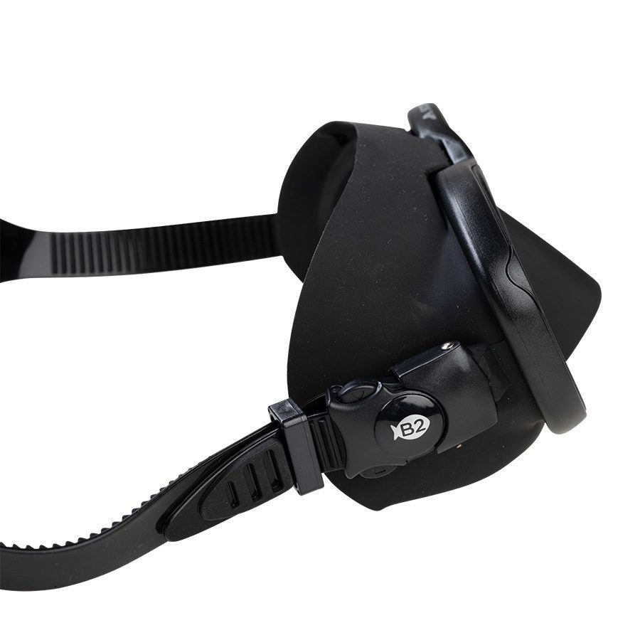 Маска Scorpena B2 продолжает традиции малообъёмных масок, прекрасно подходящих для  глубоководной охоты и фридайвинга.Благодаря новой форме обводов корпуса и приближённым к глазам стёкол маски, модель обладает небольшим объёмом подмасочного пространства. Это позволяет расходовать минимум воздуха для компенсации давления внутри маски во время глубоких нырков. Несмотря на небольшое расстояние от глаз до закалённых стёкол и небольшой размер иллюминаторов, эта маска обладает широким полем обзора. Матовая внешняя поверхность маски не бликует на солнце, приятна на ощупь и не скользит в руках.Пряжки с механизмом точной регулировки натяжения ремня установлены прямо на силиконовом обтюраторе, что делает маску надёжной, компактной и удобной для переноски и хранения. Уникальное гибкое поворотное крепление пряжек позволяет настроить наиболее комфортное положение маски на лице и добиться плотного её прилегания. Крупные кнопки регулировки ремешка делают этот процесс легко доступным на ощупь даже в толстых неопреновых перчатках. Расширяющийся к середине эластичный силиконовый ремешок маски позволяет комфортно фиксировать его на затылке.Стильный внешний вид маски Scorpena B2 украсит комплект экипировки любого пловца, вне зависимости от его опыта, пола и возраста.Поставляется в комплекте с фирменным боксом для хранения и транспортировки.