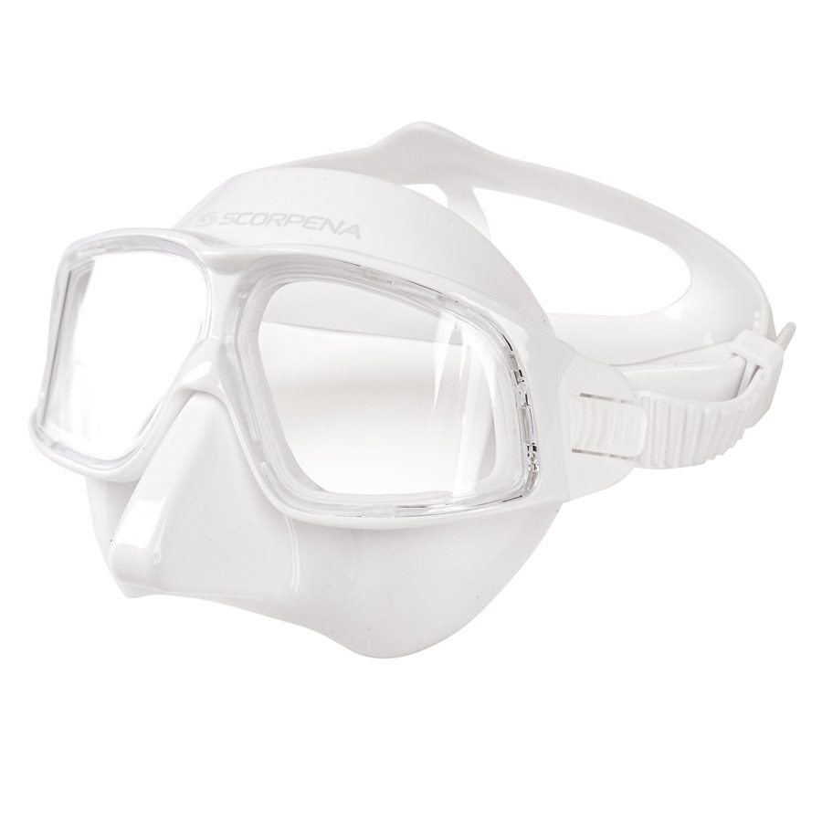Маска Scorpena Apnea F1 создана специально для фридайвинга, она безупречно подходит для самых требовательных спортсменов. Особенность маски — легкие сферические линзы из особого полимера. В отличие от масок со стеклянными линзами, полимерные линзы позволяют видеть объекты под водой в их реальном размере, а так же не дает эффекта приближения предметов. Сферическая форма рамки и линз обеспечивают отличный обзор и минимальное сопротивление в воде. Scorpena Apnea F1 имеет компактные размеры, однако хорошо подходит не только хрупким девушкам, но и взрослым мужчинам. За счет полимерных линз маска практически невесома и не заметна на лице. Мягкий обтюратор из гипоаллергенного силикона не вызывает раздражения и обеспечивает комфортное прилипание к лицу. За счет малого подмасочного пространства маску легко продуть и прочистить от воды.