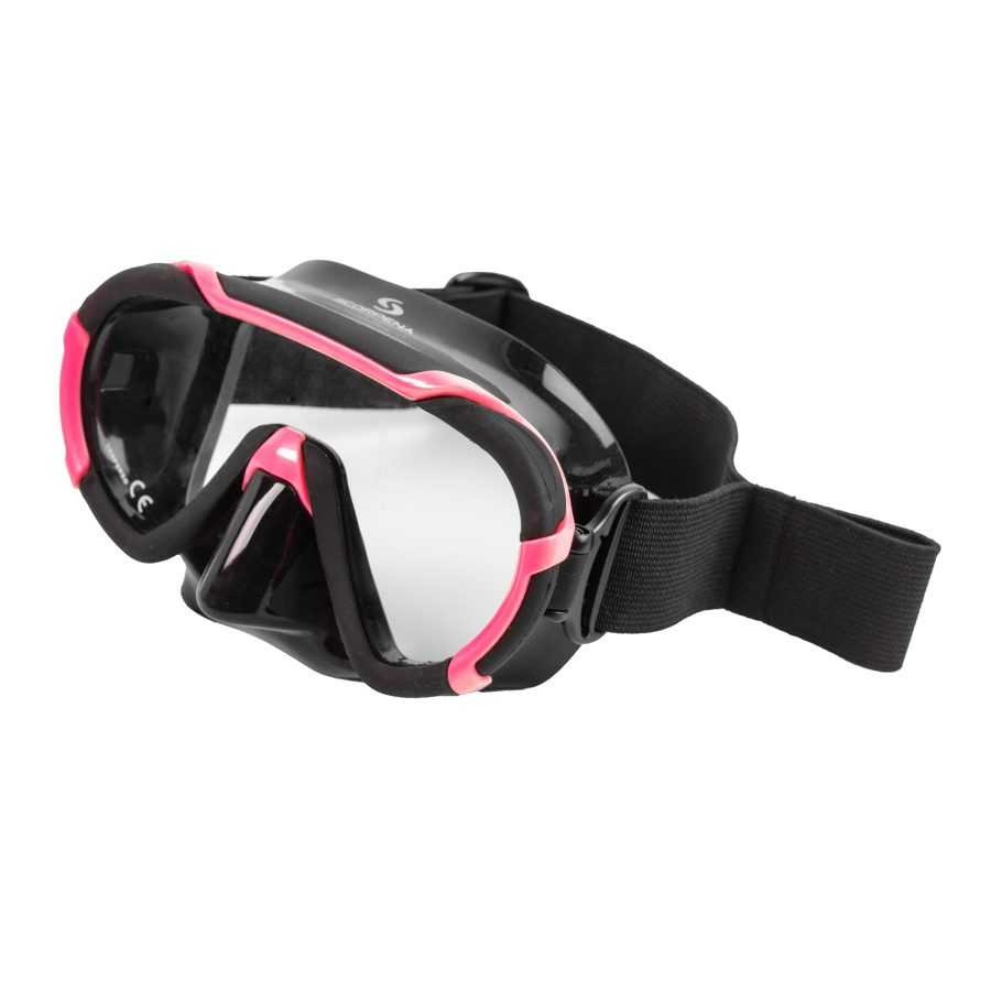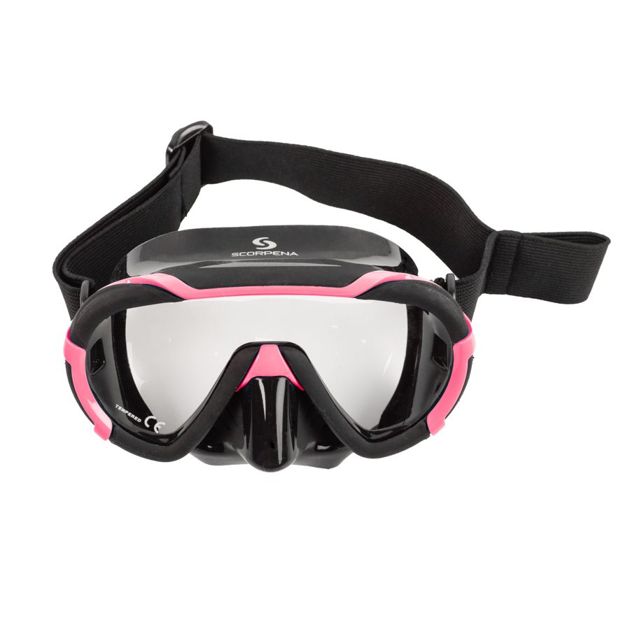 Scorpena Miami Junior – новейшая подростковая одностекольная маска с панорамным обзором.Закаленное безопасное стекло Tempered Glass. Обтюратор маски изготовлен из 100% гипоаллергенного мягкого силикона. При создании маски Scorpena Miami Junior использована самая современная технология безрамочного производства, что гарантирует отсутствие протечек даже при самом жёстком режиме эксплуатации.Ещё одной особенностью Scorpena Miami Junior является использование не силиконового, а текстильного эластичного широкого ремешка который бережно относится к волосам юного пользователя и позволяет легко и комфортно надевать и снимать маску, плотно и бережно фиксируя её на голове. Для быстрого присоединения дыхательной трубки на ремешке маски предусмотрена специальная эластичная петля.