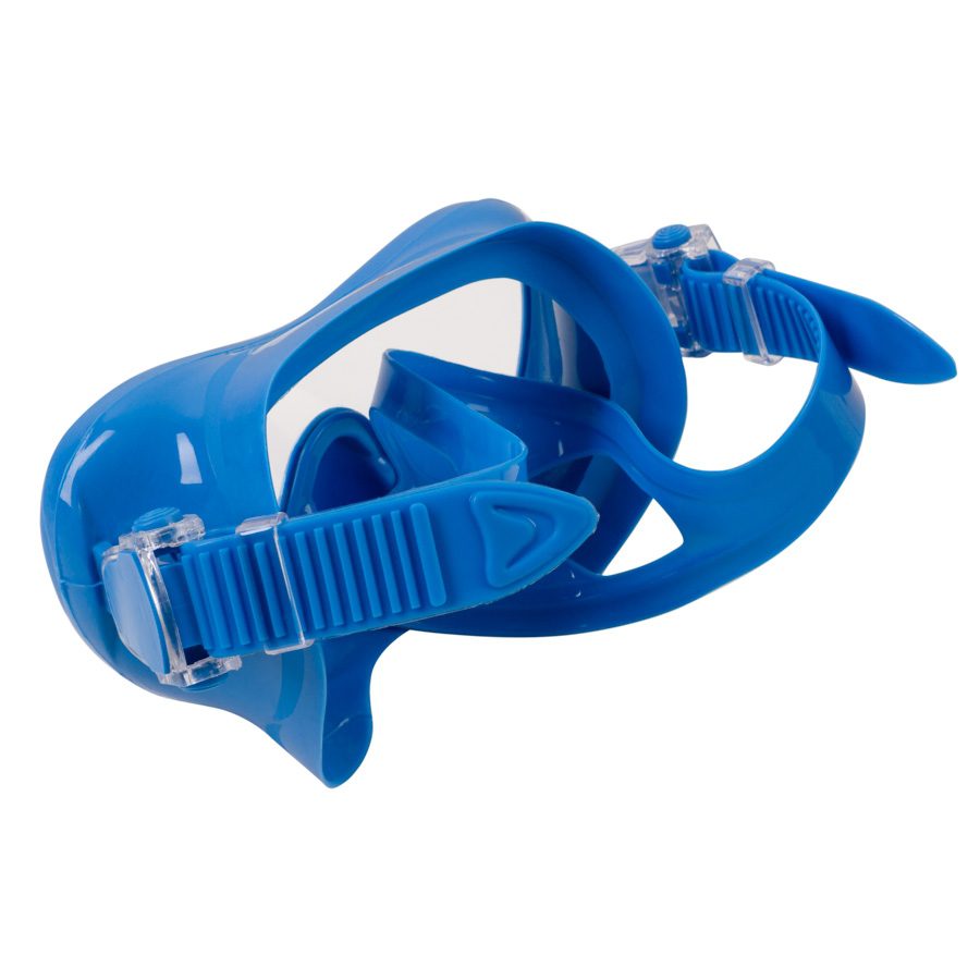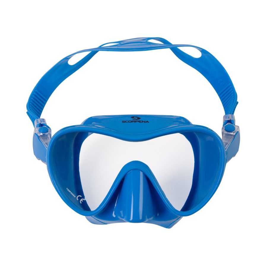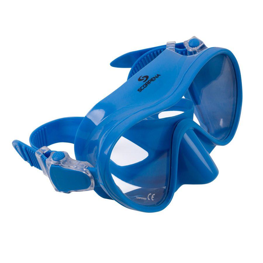 Маска Scorpena N синяя — это совокупность панорамного стекла, небольшого подмасочного пространства и качественного мягкого силикона что обеспечивает максимальный обзор и комфорт использования.Моностекло в этой маске расположено ещё ближе к глазам что увеличивает обзор и заодно уменьшает подмасочное пространство. Отсутствие пластиковой рамки уменьшает вес маски и делает её более компактной.Маска Scorpena N синяя имеет пряжки с удобной микрометрической регулировкой и рельефными кнопками позволяющими точно настраивать натяжение наощупь даже в перчатках.Гибкие крепления пряжек к силиконовому корпусу маски позволяют не переживать за их сохранность при случайном боковом сдавливании маски. В этом случае пряжки не сломаются, а просто сложатся, как боковые зеркала у автомобиля.Благодаря своему широкому обзору и удобству, маска Scorpena N является отличным выбором для сноркелинга и дайвинга. А небольшой внутренний объем позволяет также успешно использовать её для тренировок погружений на задержке дыхания и для плавания в бассейне.
