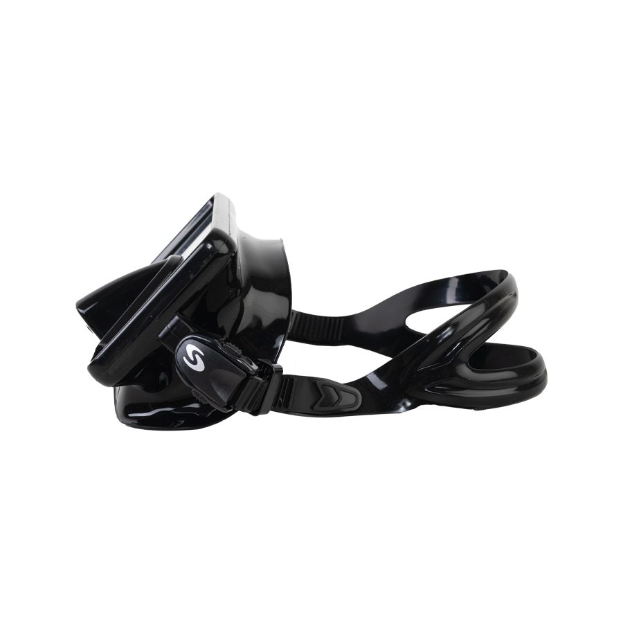 Одностекольная конструкция маски Scorpena Q8 обеспечивает непрерывность обзора в горизонтальной плоскости за счёт отсутствия центральной перегородки. А максимальная ширина и высота иллюминатора позволяет расширить сектор обзора до недоступного другим маскам предела. Никто и ничто не скроется от Вашего взора при использовании маски Scorpena Q8 под водой.Максимально прямые линии силиконовой рамки обрамляющей иллюминатор сослужат хорошую службу подводным фото и видео операторам, так как повторяют форму видоискателя и существенно близко к формату снимаемого изображения.Эта маска создана из различных материалов методом инжекционного литья под высоким давлением, без последующей ручной сборки, как у большинства других моделей масок. А иллюминатор из закалённого стекла вплавлен прямо в силикон. Благодаря этому удалось создать маску без массивного пластиковой рамки. В итоге модель Scorpena Q8 получилась достаточно лёгкой с учётом её увеличенных размеров.Но эти значительные размеры делают подмасочный объём слишком большим для комфортного выравнивания давления при нырянии на задержке дыхания. Поэтому мы рекомендуем эту маску либо для плавания по поверхности, либо для глубоких погружений с использованием SCUBA-оборудования (аквалангов) открытого или замкнутого типов. Для подводной охоты эта маска подойдёт при использовании на небольших глубинах или при хорошей физической подготовке охотника и большом опыте.Широкий обтюратор маски Scorpena Q8 выполнен из в меру плотного, но очень эластичного гипоаллергенного силикона, который обеспечивает оптимальное прилегание к коже лица и не протекает даже в холодной воде.А удобная форма носовой пазухи упрощает продувку для выравнивая давления в полости среднего уха при глубоких погружениях.Ремешок маски Scorpena Q8 изготовлен из силикона и имеет широко раздвоенную центральную часть для надёжной, но комфортной фиксации маски на голове подводного охотника. Другими словами: этот ремешок не сползает с затылка ни вверх, ни вниз даже при интенсивном плавании. Крепится ремешок при помощи удобных пряжек которые обладают системой микрометрической регулировки силы натяжения. Специальные крепления пряжек, встроенных в силиконовый обтюратор делают маску более компактной и придают конструкции эластичность, за счёт чего уменьшается риск поломки пряжки, по сравнению с жёстким креплением на рамке.Обе пряжки маски Scorpena Q8 имеют достаточно крупные и рельефные кнопки, расположенные сверху и снизу. Такое расположение и размер кнопок позволяют быстро находить их даже наощупь даже в перчатках чтобы точно настроить комфортное натяжение ремешка, то есть степень прижатия маски к лицу.Силиконовый ремешок маски очень удобен при использовании шлема из неопрена или лайкры. А если маска Scorpena Q8 надевается на непокрытую голову, то настоятельно рекомендуем использовать накладку на ремешок которая сохранит Ваши волосы и нервы.Поставляется маска в комплекте с фирменным пластиковым боксом Scorpena для бережного хранения и безопасной транспортировки.