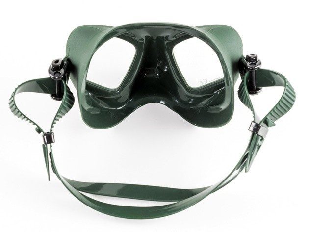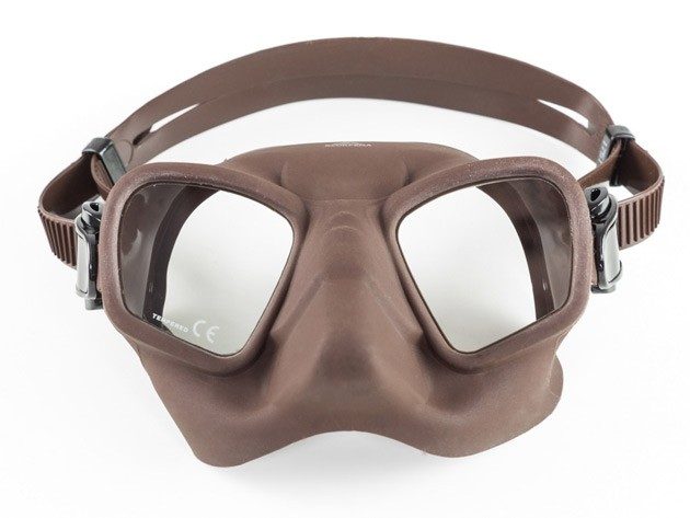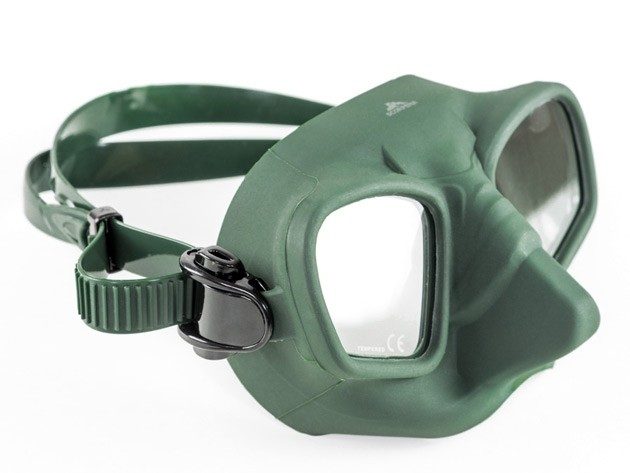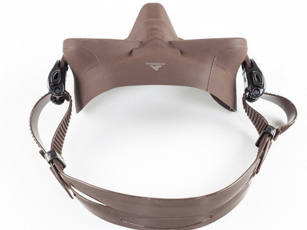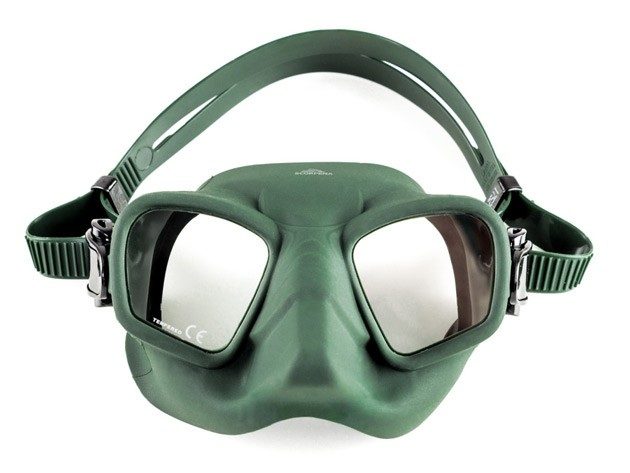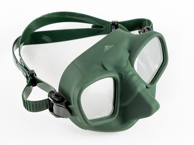 Маска Scorpena T идеально подходит для глубоководной охоты и фридайвинга. Эта модель отличается от остальных масок нашей коллекции современным дизайном и использованными при её производстве техническими решениями и технологиями! Стекла маски интегрированы прямо в силиконовый обтюратор переменной жёсткости, из-за чего удалось обойтись без использования пластикового корпуса, присущему большинству масок для подводной охоты. Благодаря этому, а также новой форме обводов корпуса и максимально приближенным к глазам иллюминаторам маски, эта модель Scorpena T обладает минимальным подмасочным пространством. Это позволяет расходовать минимум воздуха для компенсации давления внутри маски во время глубоких нырков. Из-за минимального расстояния от глаз подводного пловца до закалённых стёкол маски, эта модель обладает широчайшим полем обзора несмотря на относительно небольшой размер иллюминаторов. А матовая внешняя поверхность маски не бликует на солнце, приятна на ощупь и не скользит в руках. Пряжки с механизмом точной регулировки натяжения ремня установлены прямо на силиконовом обтюраторе, что делает маску еще более надёжной, компактной и удобной для переноски и хранения. Крупные кнопки ослабления натяжения ремешка делают процесс регулировки легко доступным на ощупь даже в толстых неопреновых перчатках. Раздвоенный эластичный ремешок маски из силиконовой резины позволяет комфортно зафиксировать его на затылке. Благодаря своему небольшому размеру может также использоваться как дублирующая маска для дайвинга. В новом сезоне 2018 года, маска появилась в новых цветах: зеленом и коричневом.
