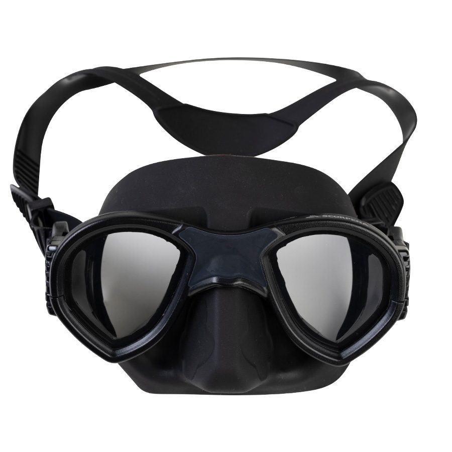 Маска Scorpena T5, помимо необычного и современного дизайна, обладает также особенностями необходимыми для глубоководных погружений: минимальный объём подмасочного пространства, двухстекольная конструкция, матовый силиконовый обтюратор и продуманная конструкция пряжек.Особый дизайн двустекольной конструкции с широко разнесёнными иллюмнаторами обеспечивает превосходный обзор, а мягкий обтюратор имеет матовую бархатистую поверхность и не только обеспечивает оптимальное прилегание маски Scorpena T5 к лицу и необычайно приятен на ощупь, но обладает крайне впечатляющим благородным внешним видом. Такой силикон не бликует на солнце, обеспечивает удобную посадку и не скользит в руках.Специальные крепления пряжек делают маску Scorpena T5 ещё более компактной и имеют возможность сложения внутрь, за счёт чего уменьшается риск поломки пряжки, по сравнению с жёстким креплением на рамке.Прочная пластиковая рама с текстурированной поверхностью обеспечивает износостойкость, а удобная система крепления широко раздвоенного ремешка позволяет одним движением достигнуть максимально комфортного натяжения и распределить нагрузку на большую площадь.В комплект входит удобный и практичный бокс Scorpena для транспортировки и хранения маски.Во время погружения в маске SCORPENA T5 вы можете не думать о снаряжении и добиваться новых успехов на предельных глубинах!