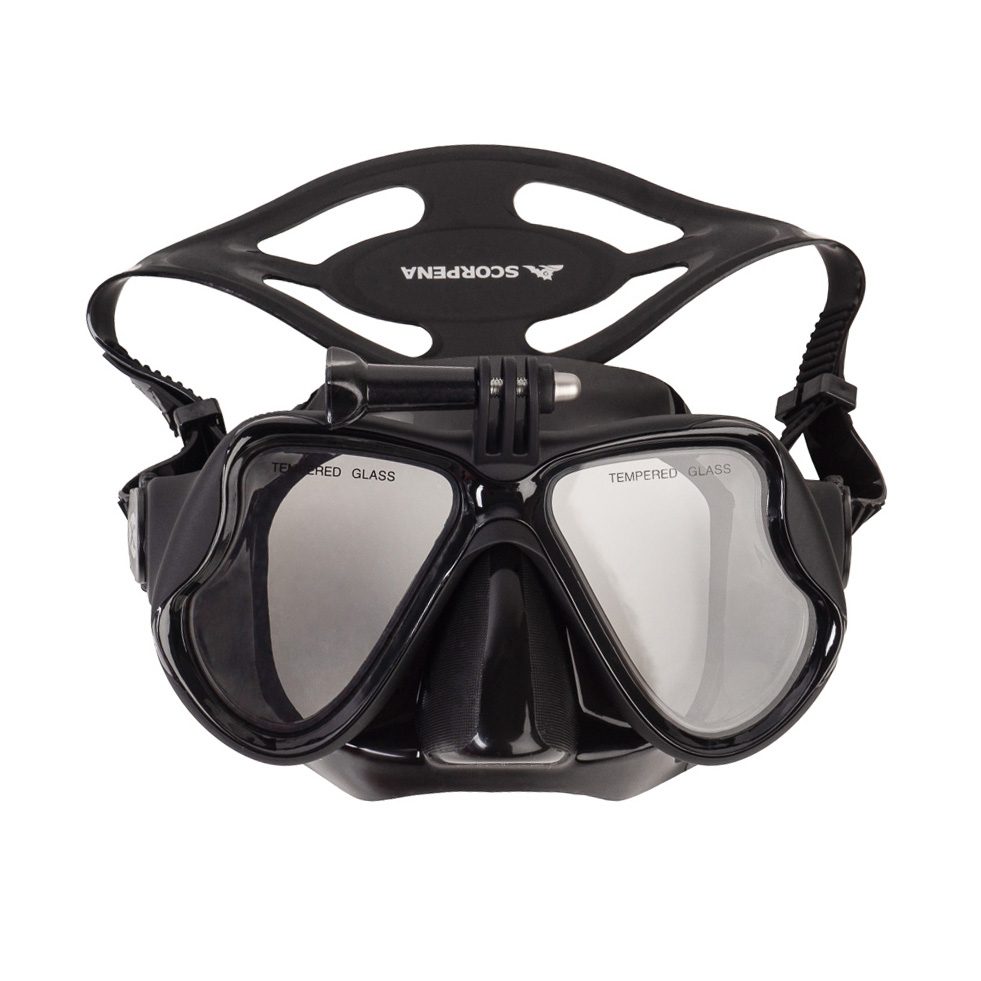 Маска Scorpena X2 подходит для всех моделей GoPro. При их использовании вместе с нашей маской у вас могут появиться превосходные ролики, которые вызовут восхищение любого, кто увидит их, а вам это даст возможность внимательно просмотреть своё погружение в спокойной обстановке для детального анализа и последующего совершенствования навыков.Существует много приспособлений для съёмок при занятиях дайвингом, но более интуитивного, простого и удобного места, чем крепление камеру на маску, пока не придумали. Основные преимущества такого решения очевидны: камера всегда снимает то, что вы видите, так как поворачивается во всем плоскостях вместе с вашей головой и при этом руки у вас остаются свободными. Особенно это важно при занятиях подводной охотой, так как в этом случае руки заняты подводным ружьем и ножом или фонарём.Маска Scorpena X2 с креплением для камеры может стать для вас основой для создания мобильного комплекса подводной видеосъёмки. Установив сверху видеокамеру вы можете закрепить на обоих боковых ремешках маски один или два фонаря. Таким образом, одна маска Scorpena X2 заменит вам до трёх штативов при подводной видеосъёмке и всё это – при свободных руках и интуитивном управлении!Камера очень легко крепится к маске с помощью любого стандартного винта, которым, как правило, оснащен подводный бокс видеокамеры. Винт для крепления камеры входит в комплект.Маска подходит под большинство типов лиц и герметично прилегает благодаря мягкому обтюратору по всему периметру. Юбка этой маски изготовлена из высококачественного эластичного гипоаллергенного силикона. Стекла – особо прочные, закалённые. Затылочный ремешок изготовлен из силиконовой резины и имеет расширение в центральной части для более надёжного охвата головы и комфортного прижатия маски к лицу. Для регулировки степени прижима маски, она имеет пряжки с механизмом быстрой регулировки. Причём регулирование осуществляется в весьма широком диапазоне, что позволяет использовать эту маску людям с очень широким диапазоном размеров головы. Микрометрический механизм регулировки пряжек делает возможным очень тонко настроить прижим маски к лицу, что делает её использование комфортным даже в течение длительного времени. Кроме того, ремешок с пряжками может быть отстёгнут с одной или обеих сторон, что существенно облегчает процесс снятия и одевания маски. Пластиковый корпус имеет приятное на ощупь матовое покрытие, которое также уменьшает образование бликов и паразитических засветок при съёмке.Поставляется в комплекте с фирменным боксом для хранения и транспортировки.