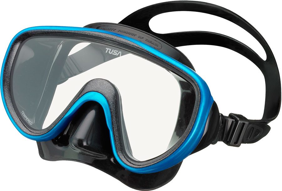 Бюджетная качественная маска от ведущего японского производителя TUSA. Одностекольная маска с широким панорамным обзором. Закаленное безопасное стекло Tempered Glass. Небольшой подмасочный объем – маска близко расположена к лицу, что дает меньшее сопротивление при плавании в воде, и из-под маски легко удалять случайно попавшую воду. Пятипозиционная регулировка угла натяжения ремешка – комфортная адаптация под любую форму головы. Скругленный край обтюратора – маска мягко прилегает к лицу, не оставляя резких вмятин на лице после плавания. 3D ремешок точно повторяет форму затылка – маска надежно крепится на голове. Обтюратор и ремешок из 100% гипоаллергенного силикона. Цвета: BK/BK (черный с черным силиконом), BK/MB (синий металлик и черным силиконом), CLB (голубой).