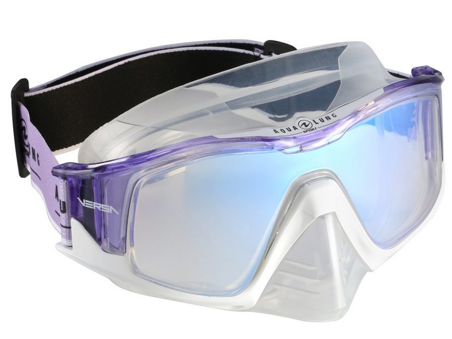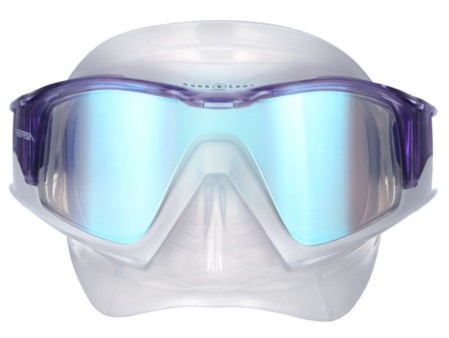 Легкая цветная необычная маска Versa для сноркелинга с полимерными широкообзорными линзами на текстильном ремешке — яркая новинка 2020 года — Изогнутые линзы обеспечивают панорамный обзор на 180 градусов с минимальным искажением. — Устойчивые к царапинам линзы из поликарбоната очень прочны и сохраняют прозрачность в течение длительного времени. — Анти-запотевающее покрытие, сохранится на долго, если не протирать линзы, а только ополаскивать пресной водой. — Мягкий обтюратор из гипоаллергенного силикона плотно, но при этом комфортно прилегает к лицу — Увеличенный носовой карман позволяет надевать маску на любой тип лица — Уменьшенный вес —  220 гр — Новый ремешок из эластичной ткани — Быстрорегулируемые пряжки