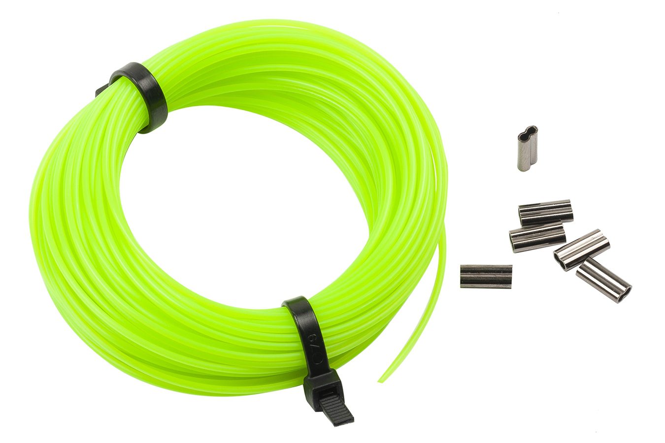 Монолинь или мононить используется для крепления гарпуна к ружью. В отличии от веревочных линей, монолинь имеет память и за счет этого удобно укладывается при слиновке ружья. Также монолинь надежнее чем веревочный линь, так как не подвержен процессу корозии. Особенно это важно при охоте в соленой воде. Привязывается монолинь к гарпуну с помощью обжимных трубок, которые идут с ним в комплекте, в данном случае 6 штук. 15 метров монолиня хватит на то чтобы привязать три гарпуна к ружьям длиной до 85 см. и два гарпуна к ружьям длиной 95 и более. И само собой, у подводного охотника всегда должен быть с собой запасной линь и обжимные трубки, а при покупке упаковки 15 метров + 6 зажимов. Как раз остается запасной линь и зажимы.