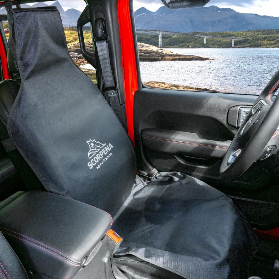 Накидка на кресло автомобильное выполнена из плотного материала, который не пропускает воду.Длина145 см, ширина 55 см. По краям имеются карабины для закрепления чехла на сидении.
