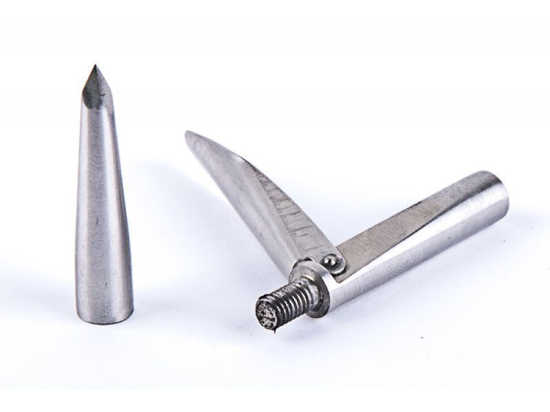 Данный наконечник имеет конусообразную заточку, благодаря которой обладает средней проникающей способность.Наконечник имеет сменный каленный баек, что повышает его прочность и позволяет быстро и удобно его заменить даже если он был поврежден.Основание наконечника, внешний диаметр которого 9мм, изготовлено из качественной нержавеющей стали.Пиламида имеет один длинный флажок, 55мм каждый, его общая длина 90мм, резьба М7.
