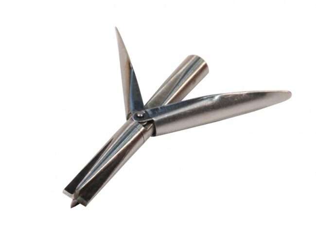 Наконечник изготовлен из высокоуглеродистой коррозионностойкой стали и имеет резьбу М7х1 для наворачивания на гарпун. С другой стороны эти наконечники также имеют резьбовую часть которая позволяет быстро менять бойки с разными типами заточки: конусная (пулевая), трёхгранная, четырёхгранная, трёхгранная с проточками, типа корона (шоковая) и с упроченным сердечником (дюбель).Также этот наконечник оснащён двумя откидывающимися флажками для предотвращения схода загарпуненной добычи.Размер:Длина: 9,5 см (без скруч.бойка длина — 4,5 см)Резьба: М7х1Флажки: 5,5 см