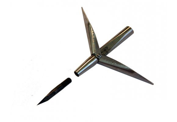 Конструктивные особенности наконечника это трехгранная сменная головка из закаленной стали, при необходимости который можно выкрутить и заменить на новый. Форма наконечника и небольшой диаметр показывают хорошую пробивную способность. Если гарпун пробивает рыбу на вылет то в этом случае ее сход практически не возможен.Флажок наконечника изготовлен из нержавеющей стали высокого качества, закреплен на оси- заклепке диаметром 2 мм. Трехгранная заточка головки лучше прорезает чешую рыбе. Наконечник Жерех изготовлен из материалов высокой твёрдости ,выдерживает деформации и не подвергается коррозии.Резьба М 7 применяется на большинстве импортных ружей, также сделан заход под гарпун, что позволяет увеличить прочность конструкции и уменьшить вероятность обламывания гарпуна у резьбовой части. — Длина флажка 55 мм.- Длина наконечника 95 мм.- Головка скручивающаяся 40 мм.- Резьба 7 мм.