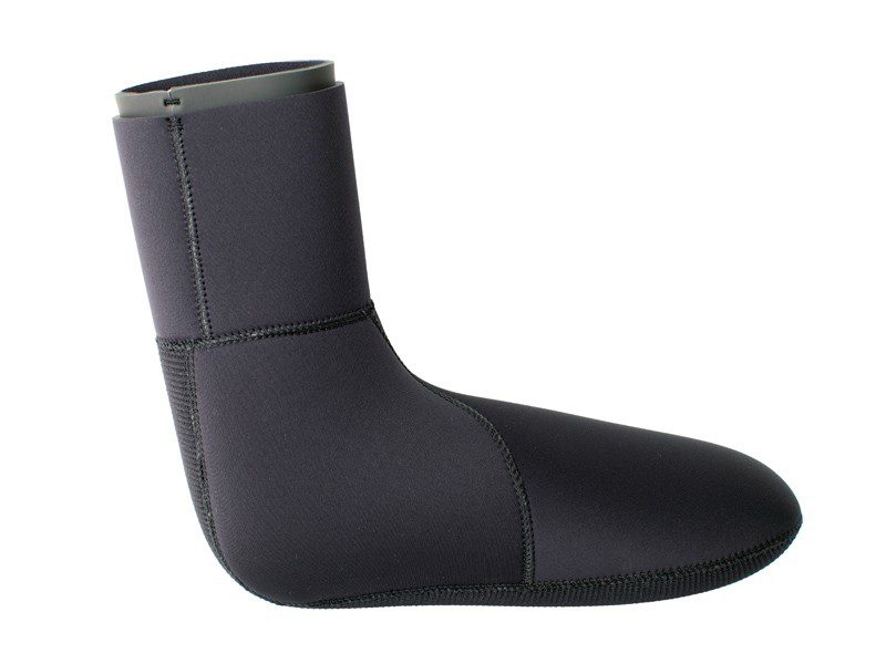 Неопреновые полусухие носки Scorpena E — вершина линейки носков Scorpena. Они изготовлены из 7 мм мягкого и сверхэластичного неопрена со специальным покрытием изнутри на основе нейлона — для максимального комфорта.Особенность этой модели — двойная манжета из Smoothskin. Одна манжета заправляется под штанину, вторая закрывает ее сверху, что препятствует попаданию воды в носки. Швы проклеены встык и прошиты слепым швом. Носки создавались с учетом особенностей строения правой и левой ноги, а также учитывают угол наклона ступни при гребке. Подошва из более твердого неопрена для большей защиты стоп и меньшей стаптываемости при ходьбе. Снаружи неопрен покрыт износостойким покрытием Supratex.