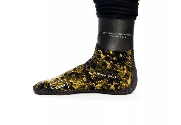 Носки Сталкер Кевлар — вершина неопренового носкостроения. Изготовлены на правую и левую ногу отдельно, по лекалам легендарной модели Мечта Снегурочки, но усиленной кевларом подошвой и камуфлированным неопреном. Даже карасю понятно, что это значительно увеличивает срок службы носок. Анатомическая форма носок учитывает угол наклона ступни в самом рабочем положении — при гребке. Удлиненные, плавно изогнутые линии швов позволяют избежать перпендикулярных линии шва нагрузок — это повышают их прочность и эластичность. Обтюратор вывернут голой резиной наружу для улучшения герметичности соединения с обтюратором штанов.Рекомендуются любителям долгих пеших переходов в гидрокостюме по пересеченной местности. Характеристики: Неопрен: толщина 7 ммНейлон снаружиОткрытая пора внутриТемпература комфортного использования: 14-22 градусаТип: анатомический для правой и левой ногиПодошва: покрытие КевларомЦвет: Камуфляж РДЕСТ 2.0.Размеры: M, L, XL, XXL
