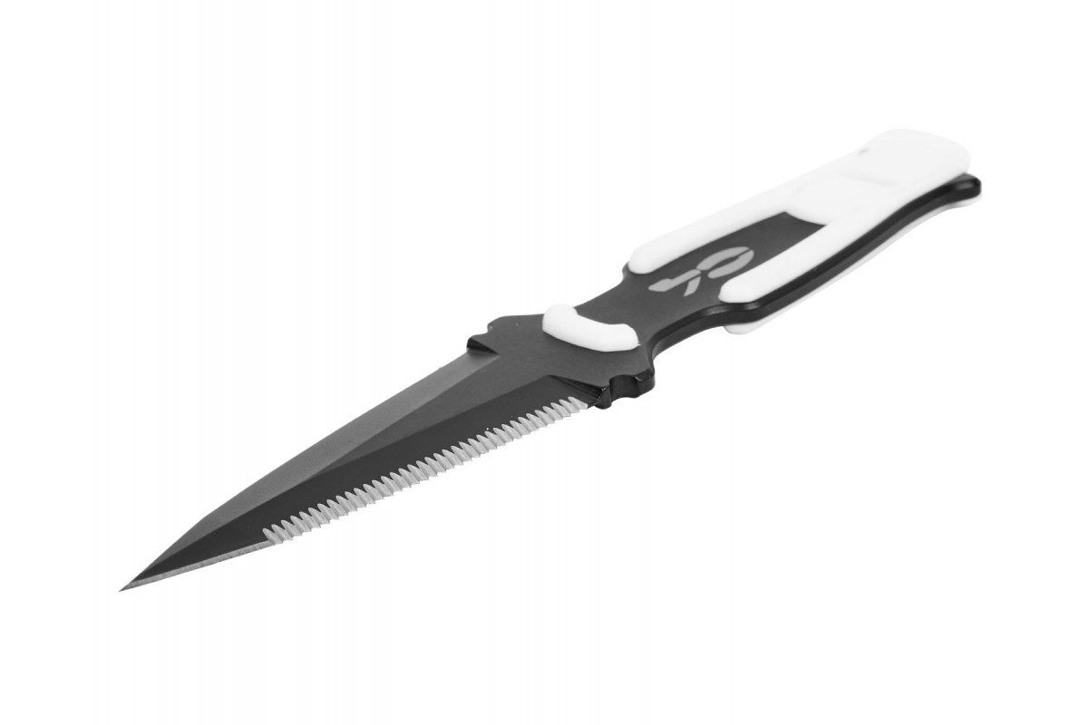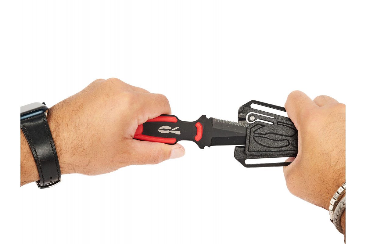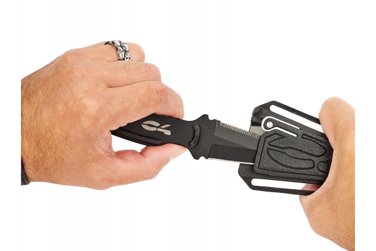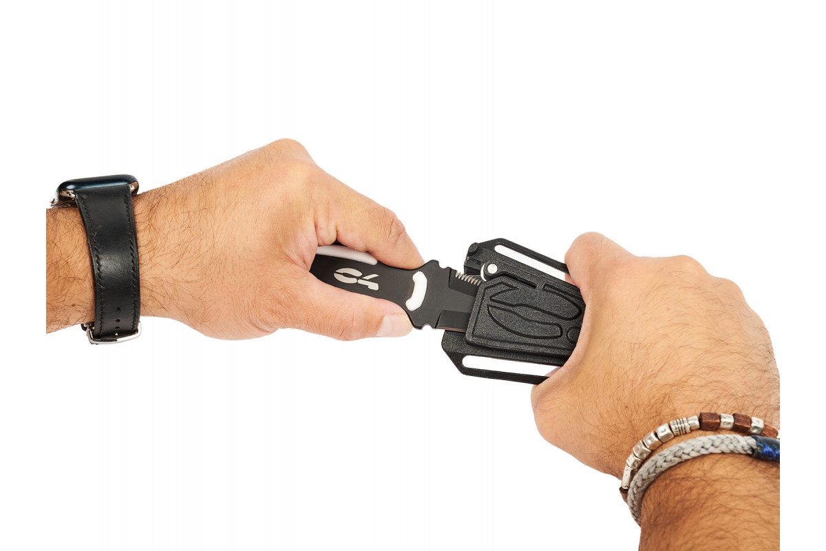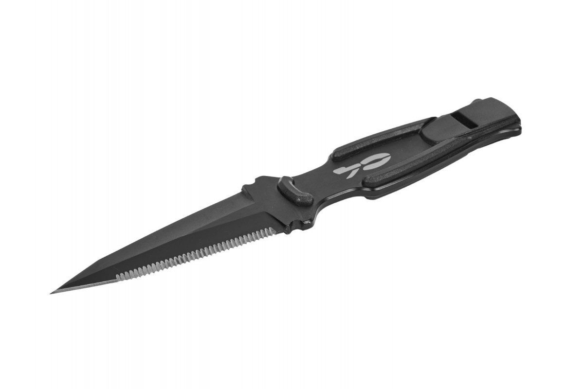 Нож C4 RONIN, новинка 2024 года, это нож с инновационным дизайном, разработанный специально для подводной охоты. Рукоятка выполнена в форме металлического корпуса ножа. В основании рукояти находится мощный свисток, который очень полезен в экстренных ситуациях. Клинок ножа C4 RONIN длинной 81 мм изготовлен из нержавеющей стали AISI 420B, покрыт черным PVD-покрытием, которое повышает его устойчивость к коррозии. Нож C4 RONIN оснащен пилообразной заточкой (серрейтор) с одной стороны и классической заточкой (плейн) с другой стороны. Нож оснащен центральным фиксирующим зубчатым зацепом, который используется как для фиксации ножа в ножнах, так и для его извлечения, используя эластичную память ножен. Чехол ножа C4 RONIN изготовлен из термопластичного материала с высокой механической прочностью и низким влагопоглощением. Ножны имеют два двойных отверстия для крепления к грузовому поясу, что позволяет перемещать его на ремне без необходимости снимать груза.