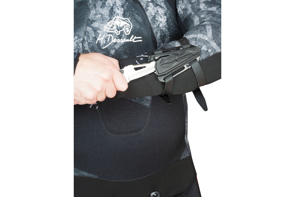 Нож C4 VIKING изготовлен из специальной антикоррозионной стали и имеет усиленный наконечник. Для изготовления ножа C4 VIKING используется сталь AISI 304, которая невосприимчива к соленой воде. Нож C4 VIKING имеет отверстие в клинке, которое позволяет вытаскивать застрявший в дереве или в камнях гарпун. VIKING можно использовать как основным, так и запасным. Нож C4 VIKING имеет обоюдоострую заточку с обеих сторон, одна сторона серрейтор, вторая плейн. Клинок выполнен монолитной конструкцией из стали, переходящей в рукоятку. Рукоятка выполнена из термопластика и в сочетании с ярким стальным лезвием делает нож чрезвычайно заметным в случае потери в воде. Длина и ширина рукоятки позволяет комфортно использовать нож даже в толстых перчатках.