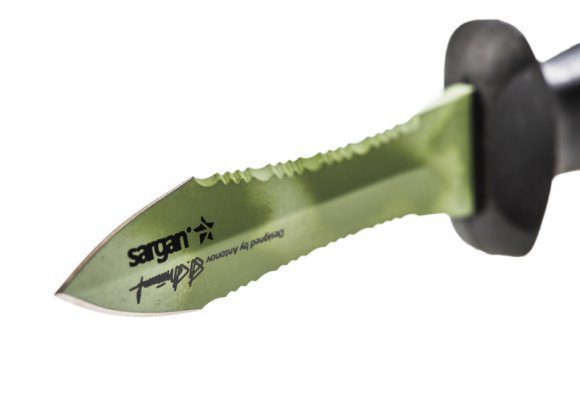 Нож подводного охотника — Тургояк Стропорез mini, с характерной формой клинка стропореза ВДВ. Этот нож является «младшим братом», бюджетным вариантом ножа «СТАЛКЕР-СТРОПОРЕЗ Z1». Удлиненная вогнутая линия реза, существенно облегчает разрезание одним движением различного рода шнуров, лесок, сетей — смертельную опасность для подводного охотника или дайвера.Копьевидное острие клинка имеет хорошую проникающую способность, что позволяет уверенно обездвиживать даже самую крупную трофейную рыбу. Рукоятка ножа изготовлена из нескользящего технополимера. На конце рукоятки имеется отверстие для эластичного шнурка.Никогда не используйте нейлоновые нерастяжимые шнуры. Самый простой вариант – резинка «от трусов» белого цвета, чтобы легче было найти нож, выпавший из руки под водой.Специальный Нож Подводного Охотника Тургояк Стропорез mini рекомендуется размещать на левой стороне груди на штатных клипсах костюмов SARGAN, что гарантирует быстрое и легкое извлечение ножа из ножен любой рукой, из любого положения, одним движением и обеспечивает мгновенную готовность к применению. Длина лезвия: 9 смТип лезвия: стропорезПокрытие лезвия: зеленый камуфляжРукоять: нескользящий технополимерНожны: технополимерФиксация в ножнах: резиновое кольцо