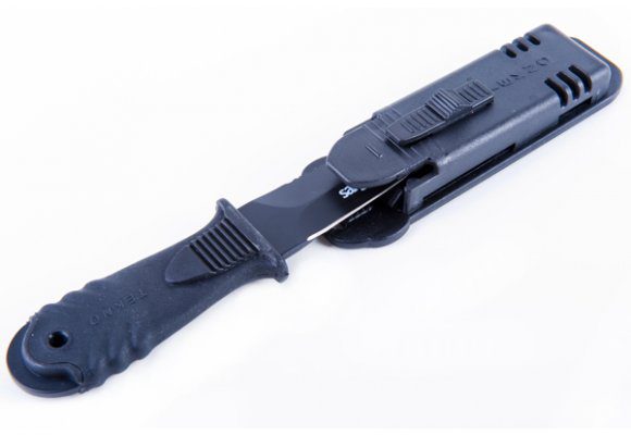 Лезвие ножа Душман, обоюдоострое состоит из режущей кромки и серейтера . Изготовлено из нержавеющей стали с тефлоновым покрытием чёрного цвета. Полная длина ножа 24 см. Длина лезвия 12 см. Лезвие имеет черненое покрытие. Рукоятка изготовлена из терморезинаы очень удобной формы как для голой руки , так и для руки в перчатке . Комплектуется следующими аксессуарами: пластиковые ножны с дополнительным замком фиксатором с оригинальным креплением ножа и двумя резиновыми ремнями с пряжками , для крепления ножа на голени или предплечье . Подводный нож – это инструмент, а не оружие. Практически нож под водой используется для разрезания сетей (в том маловероятном случае, если Вы в них запутались, а в основном, чтобы насолить браконьерам), использования в качестве рычага или чтобы извлечь застрявший наконечник. Ну и самое главное его предназначение – это получение эстетического наслаждения от красивого, но вполне мирного оружия.