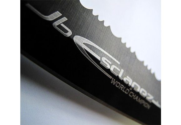 Нож JB ESCLAPEZ Silex Titanium — Стилет длинный, серая рукоятка. Оригинальная разработка компании JB ESCLAPEZ. Сменное лезвие TITANIUM обработанное по технологии Titanium plating, что увеличивает твердость металла до 90-100 HRC. Полностью оригинальная серейторная часть позволяет не только разрезать любые неметаллические волокна, но и перепиливать металлические тросики небольшого диаметра.