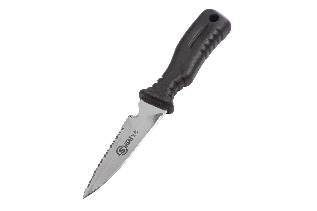 Нож для подводной охоты Sigalsub Shark. • Ремешок с регулируемой длиной. • Жесткие пластиковые ножны. • Лезвие из нержавеющей стали. • Длина ножа: 22 см. • Длина лезвия: 11 см.
