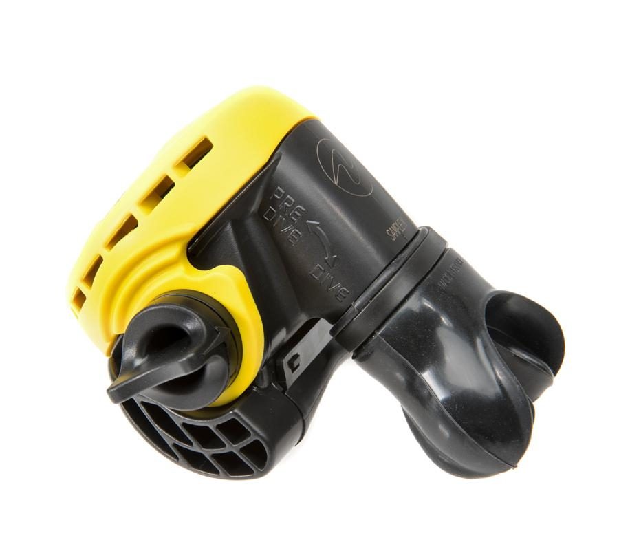 Особенности • Регулируемая заслонка Вентури с эргономичным управлением уменьшает риск free-flow на поверхности и обеспечивает максимальную производительность на глубине. • Увеличенный дыхательный канал с комфортным силиконовым загубником. • Хорошо различимый желтый шланг длиной 1 м. • Прочная и износостойкая фронтальная крышка из полиуретана. Удобно нажимать даже в толстых перчатках. • Не рекомендован для использования со сверхсбалансированными первыми ступенями (Legend).