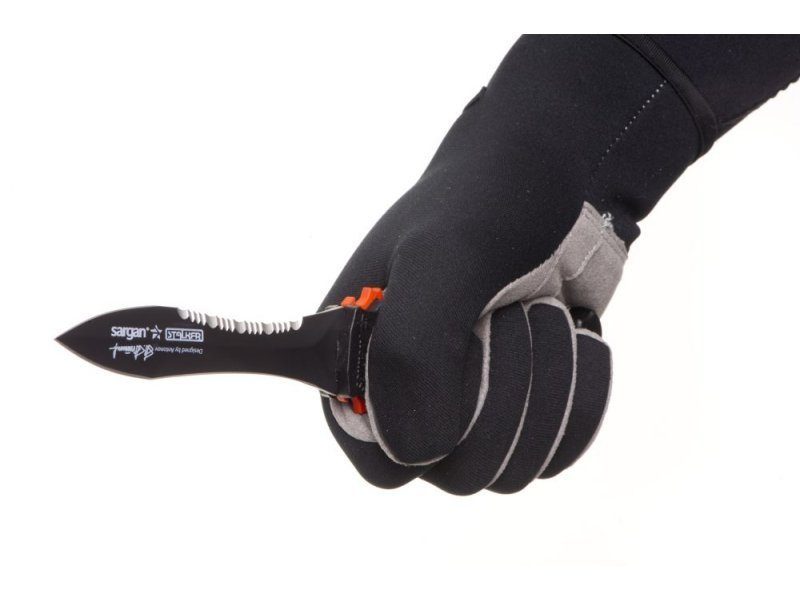 Снаружи и внутри нейлоновое покрытие, на ладонях специальное защитное покрытие — синтетическая замша. Предназначены для использования в теплой воде 24 – 28 градусов. Эргономичный дизайн. Перчатка скроена с учетом анатомического строения кисти, что позволяет снять нагрузку с руки. Защищают руки от порезов и повреждений о острые камни, плавники. Преимущества: очень эластичные, нескользящее покрытие (синт. замша) очень удобно при работе с ружьем в теплых водах.