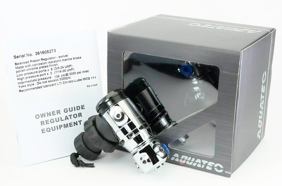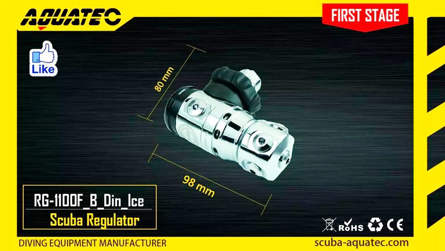 Первая ступень RG-1100F ICE DIN Аquatec Первая ступень RG-1100F DIN с внедренной расширенной системой теплоизоляции обеспечивает высокую производительность и устойчивость к обмерзанию независимо от температуры воды. — Сбалансированный и надежный прямоточный поршневой механизм — Полная изоляция механических элементов от контакта с холодом — Интегрированные теплообменники — Пружины с тефлоновым покрытием — Великолепная устойчивость к обмерзанию — Промежуточное давление 9-9,8 бар с возможностью внешней регулировки — 2 порта высокого давления — 6 портов низкого давления на поворотной турели (один из них торцевой) обеспечивают неограниченные возможности для конфигурации — Производительность 8500 л/мин — Масса 720 грамм — Соответствует стандартам СЕ
