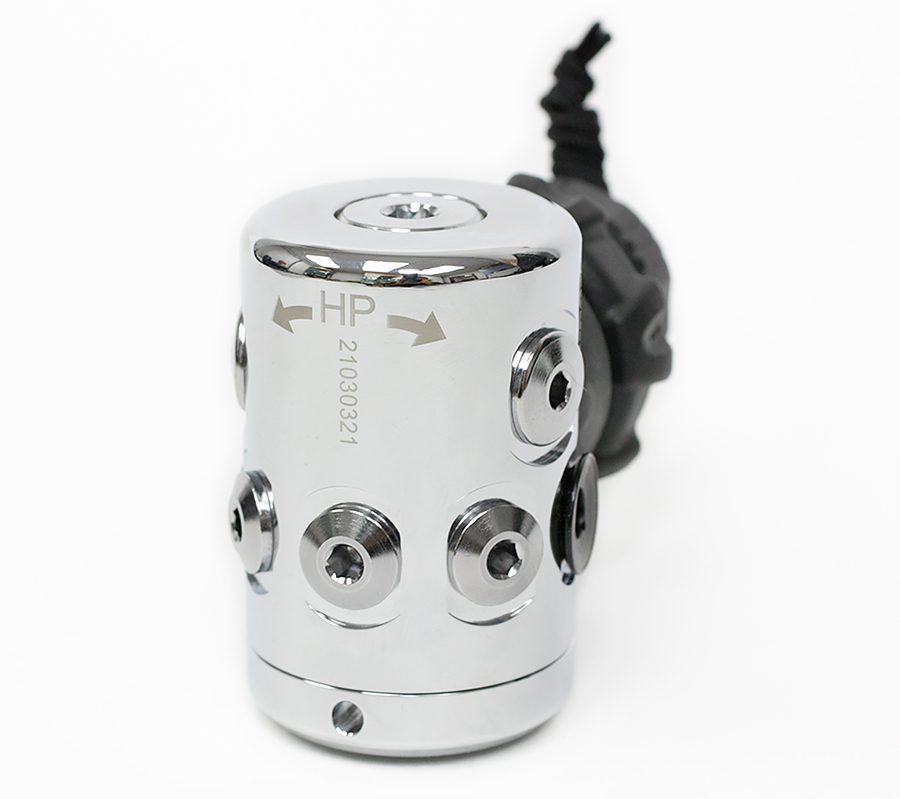 Компактная мембранная первая ступень — Сбалансированный механизм — Высокая производительность — 2 порта высокого давления, 4 порта среднего давления — Порты расположены под оптимальным углом для удобной трассировки шлангов — Коннектор DIN 300 бар