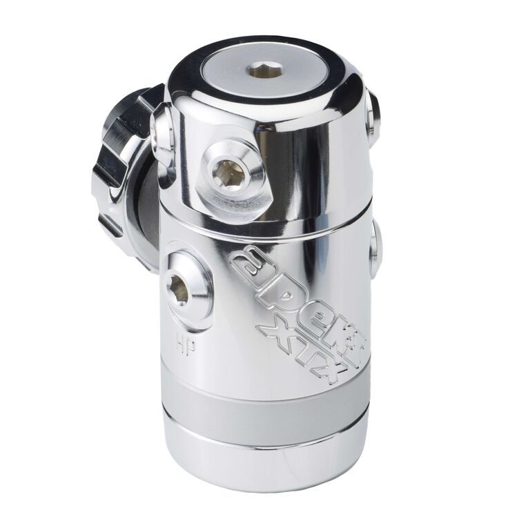 Пневматически сбалансированная Сухая силиконовая камера Поворотная турель Максимальное рабочее давление: 300 бар Рабочее давление: 9.5 бара +/- 0.5 бар Совместимый с Nitrox Материал: латунь холодной ковки Покрытие: полированный хром Пружины: нержавеющая сталь О-ринги: этилено-пропиленовые полимеры Крепление: Din/Yoke Вес DIN: 1110 г Вес в Yoke: 1240 г Порты высокого давления — 2 Порты низкого давления — 4