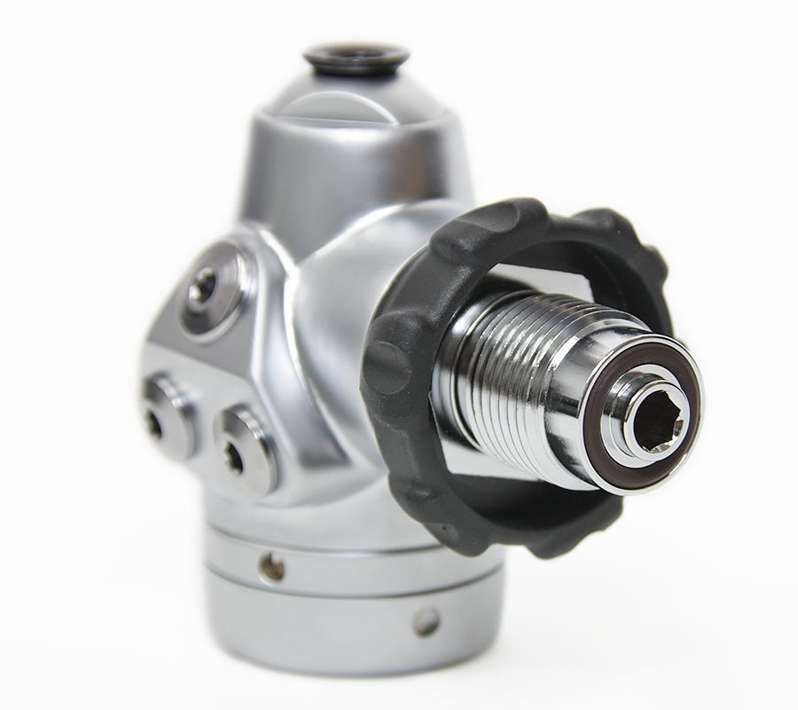 Компактная мембранная первая ступень — Сбалансированный механизм — Высокая производительность — Сухая камера изолирует внутренний механизм — 2 порта высокого давления, 5 портов среднего давления — Порты расположены под оптимальным углом для удобной трассировки шлангов, 5-й порт – высокопоточный торцевой — Витоновые о-ринги и кислородсовместимая смазка позволяют использовать регулятор с Nitrox до 40% — Коннектор DIN 300 бар — Хромированная версия и версия с черным покрытием