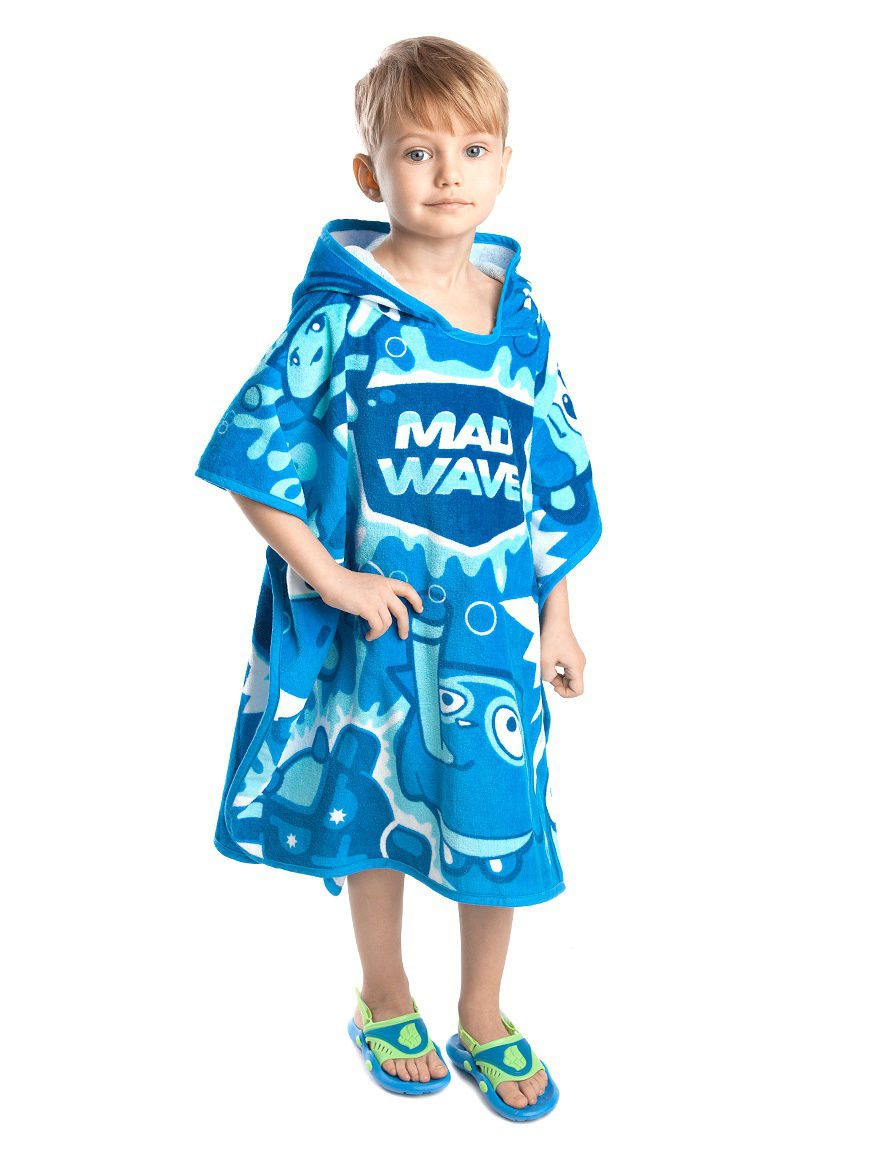 Детское полотенце-пончо с капюшоном Mad Babbles — мягкий и удобный аксессуар, который пригодится как на пляже, так и в бассейне. Модель можно использовать не только как полотенце, но и как халат после принятия ванны дома, купания в бассейне или на пляже. Детское пончо поможет быстро вытереть и согреть ребенка, а также укрыть его от солнечных лучей на пляже. Оно быстро впитывает воду, не линяет после стирки и не выгорает на солнце. Плотность ткани 300 г/м2. Длина от плеча до края 65 см. ОСОБЕННОСТИ: Хлопок 100% — натуральный материал, хорошо держит форму, приятен телу, пропускает воздух; Универсальность полотенце подойдет для тренировок в бассейне, зале, а также для отдыха на пляже; Размер — 70 х 65 см.