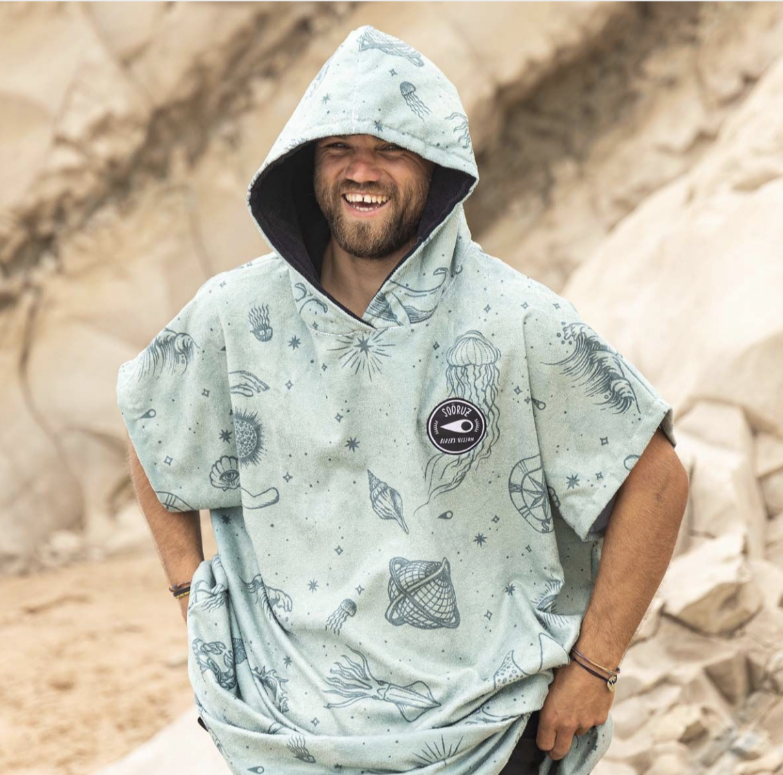 Яркие пончо для активных людей! Если вы занимаетесь водными видами спорта: виндсерфинг, кайтинг, серфинг, вейкборд, вейк-серф, то вам просто не обойтись без теплого флисового пончо-полотенца  для комфортного переодевания и нахождения на споте! Пончо отлично подходит для бани и сауны. Пончо отличаются яркими расцветками, удобным кроем, качественной тканью. ЗАЧЕМ ВАМ ПОНЧО-ПОЛОТЕНЦЕ??? * Вышли из воды, а на берегу дует ветер, и совсем негде переодеться? Есть пончо! * Ждете своей очереди на каталку, а в мокром гидрике некомфортно? Есть пончо! * Продувает уши и вы начали замерзать? Есть пончо! * Хочется выглядеть стильно на пляже, пока друзья катаются? Есть пончо! * Для согрева, переодевания, и просто тусовки – Захватите с собой пончо! Ткань – быстросохнущая микрофибра: 20% хлопок, 80% — полиэстер. Вес 280 гр. Капюшон. Пончо- унисекс.